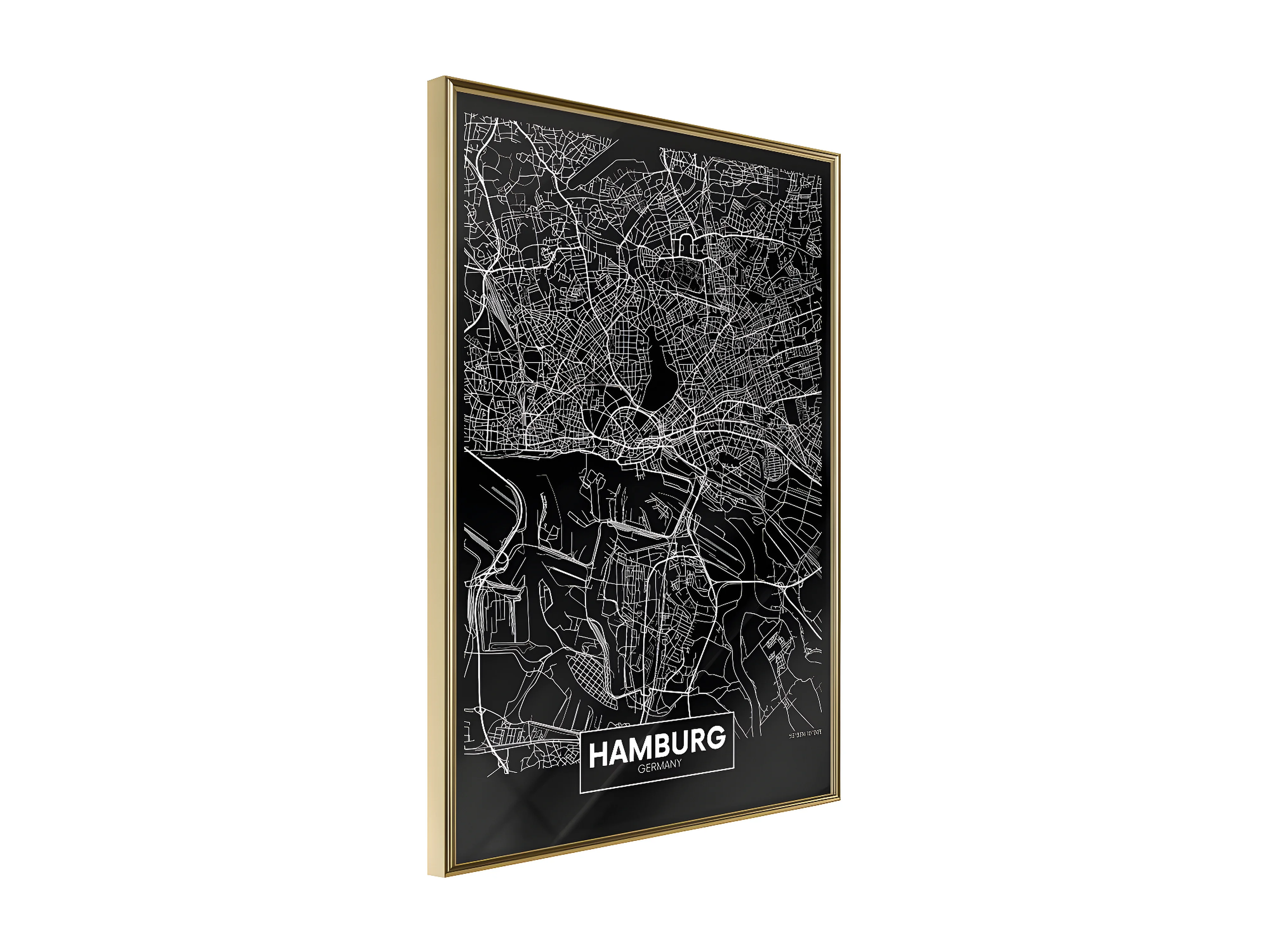Affiche Murale Encadrée "City Map Hamburg Dark" 21 x 30 cm Or