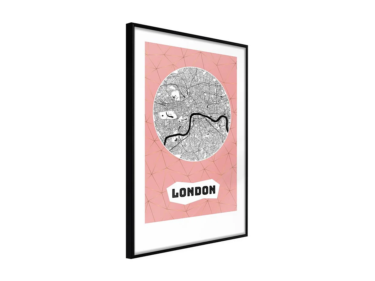 Affiche Murale Encadrée "City map London Pink" 21 x 30 cm Noir