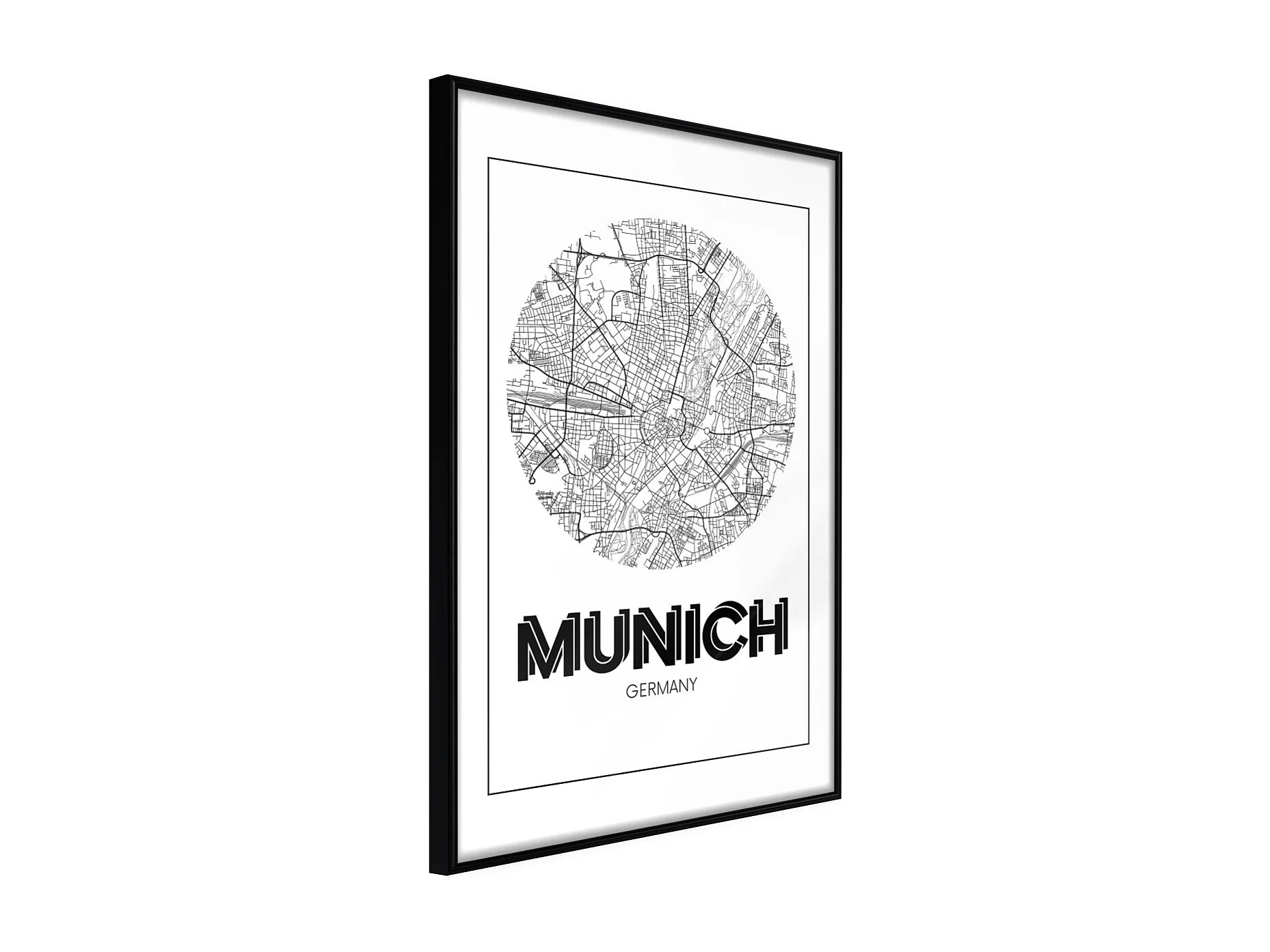 Affiche Murale Encadrée "City Map Munich Round" 30 x 42 cm Noir