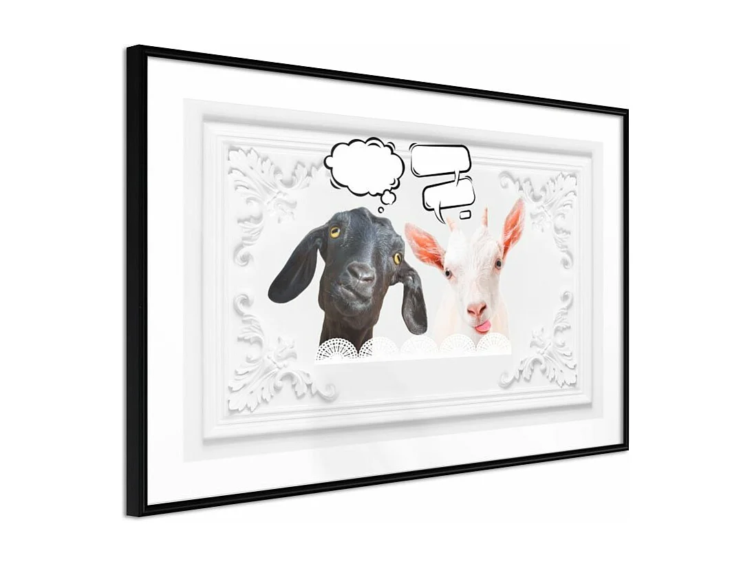 Affiche Murale Encadrée "Conversation of Two Goats" 90 x 60 cm Noir