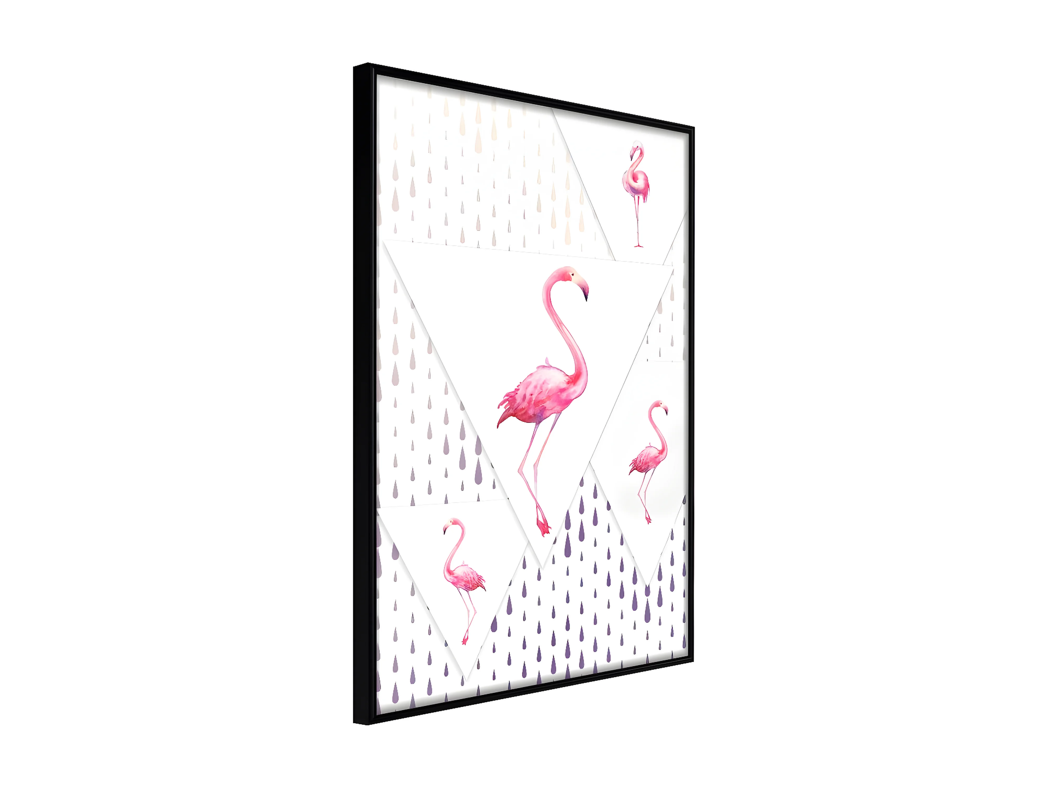 Affiche Murale Encadrée "Flamingos and Triangles" 30 x 42 cm Noir