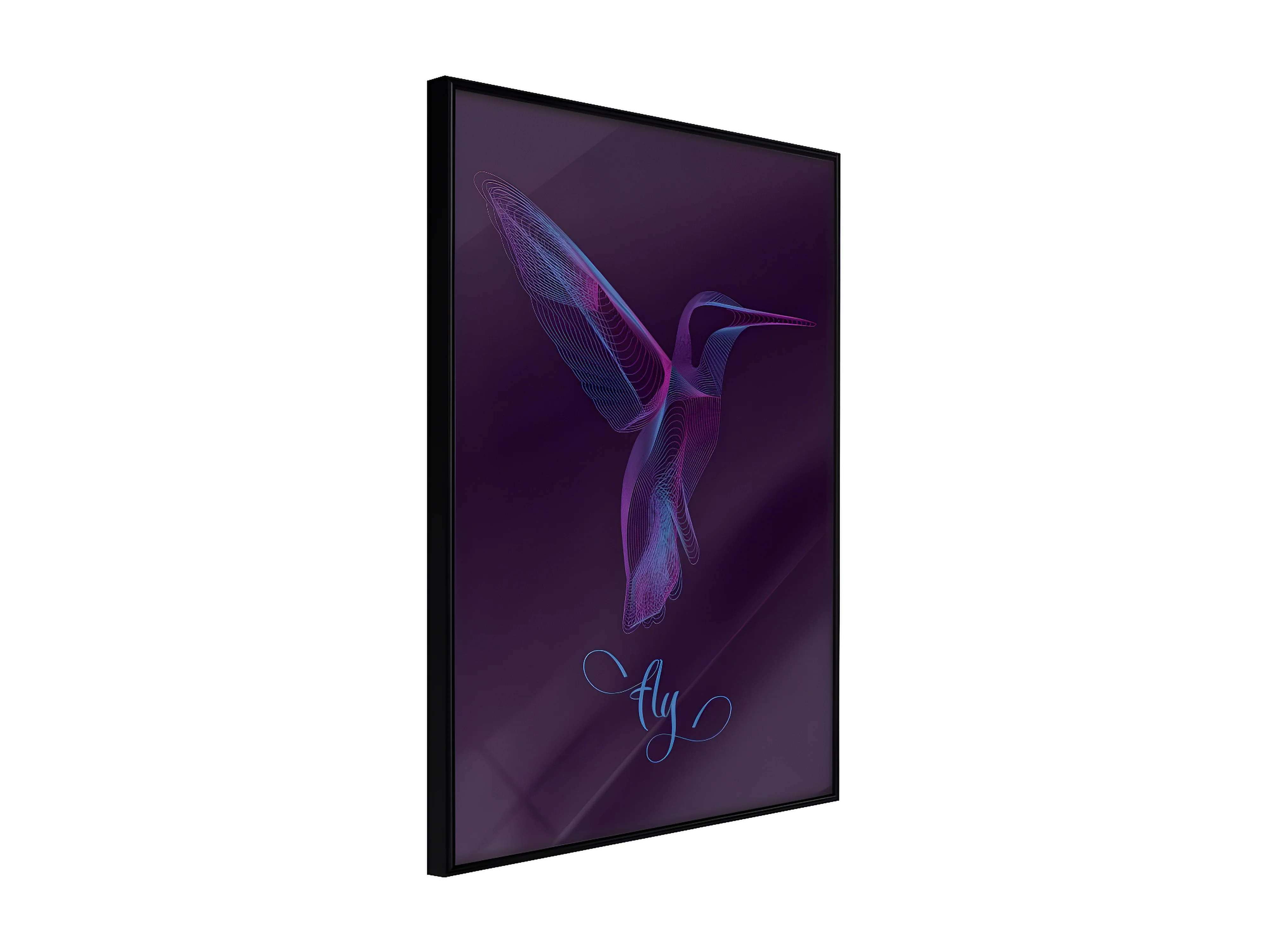 Affiche Murale Encadrée "Fluorescent Hummingbird " 40 x 60 cm Noir