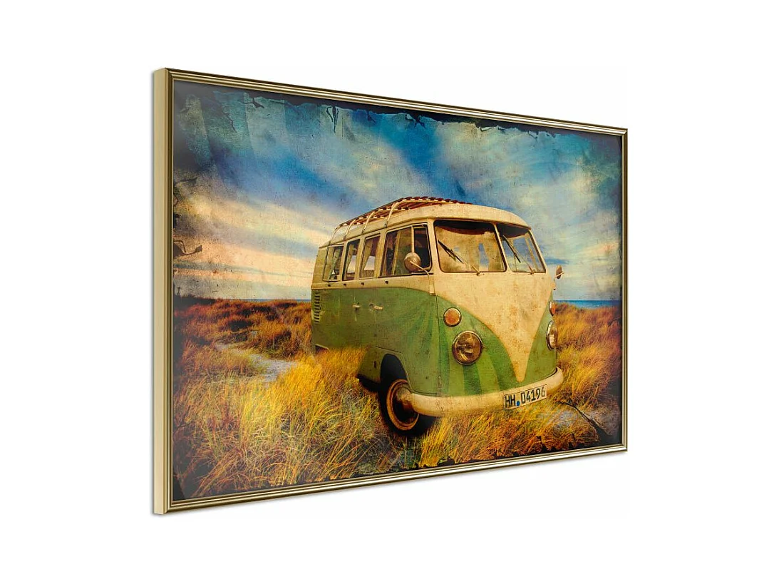 Affiche Murale Encadrée "Hippie Van I" 90 x 60 cm Or