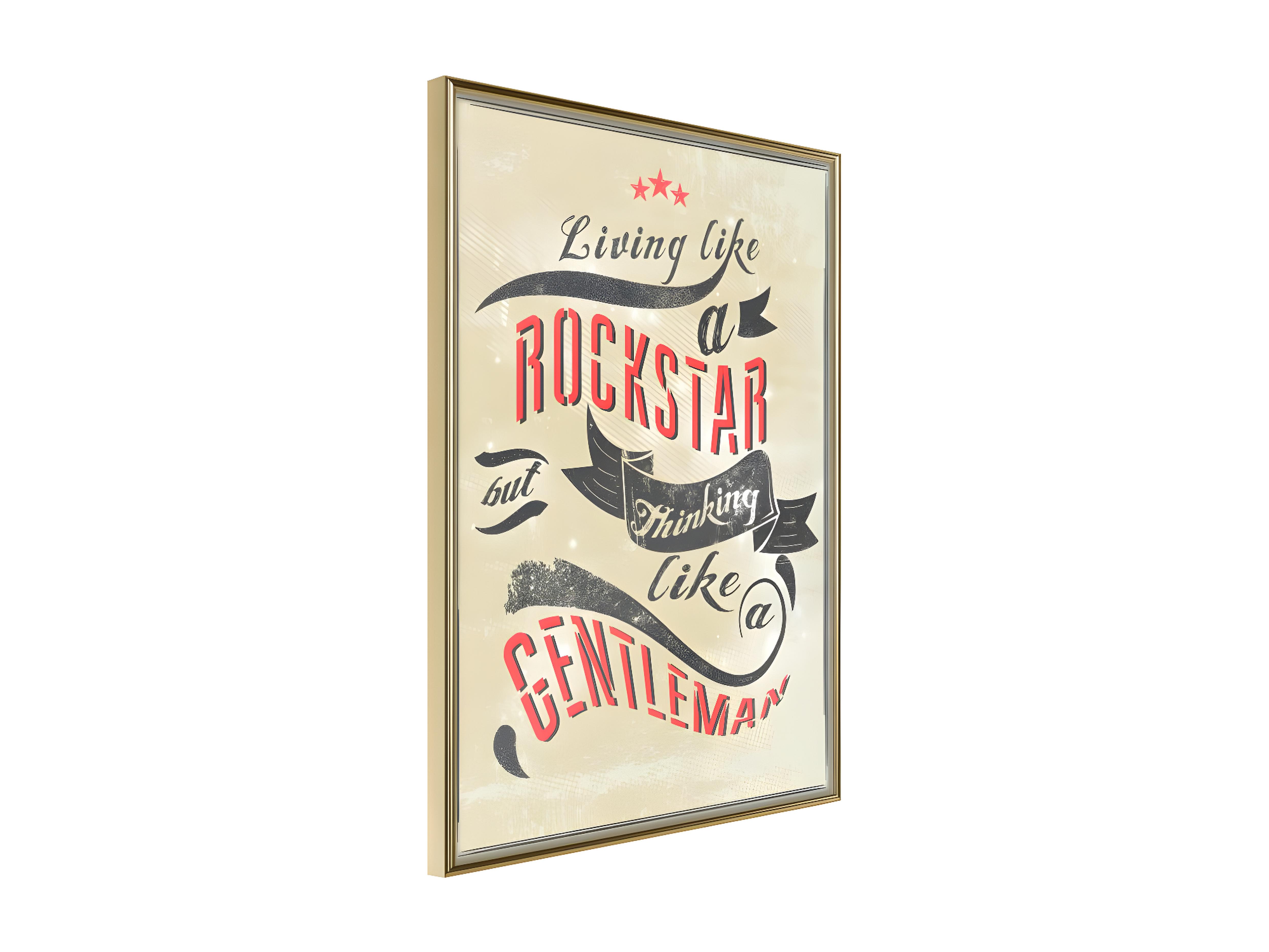 Affiche Murale Encadrée "Living and Thinking" 30 x 42 cm Or