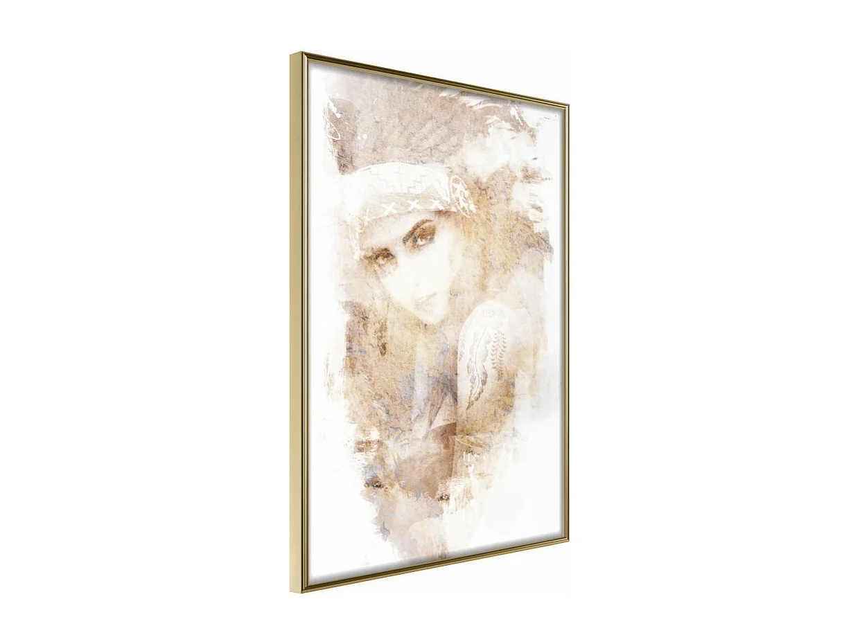 Affiche Murale Encadrée "Mysterious Look Beige" 30 x 42 cm Or