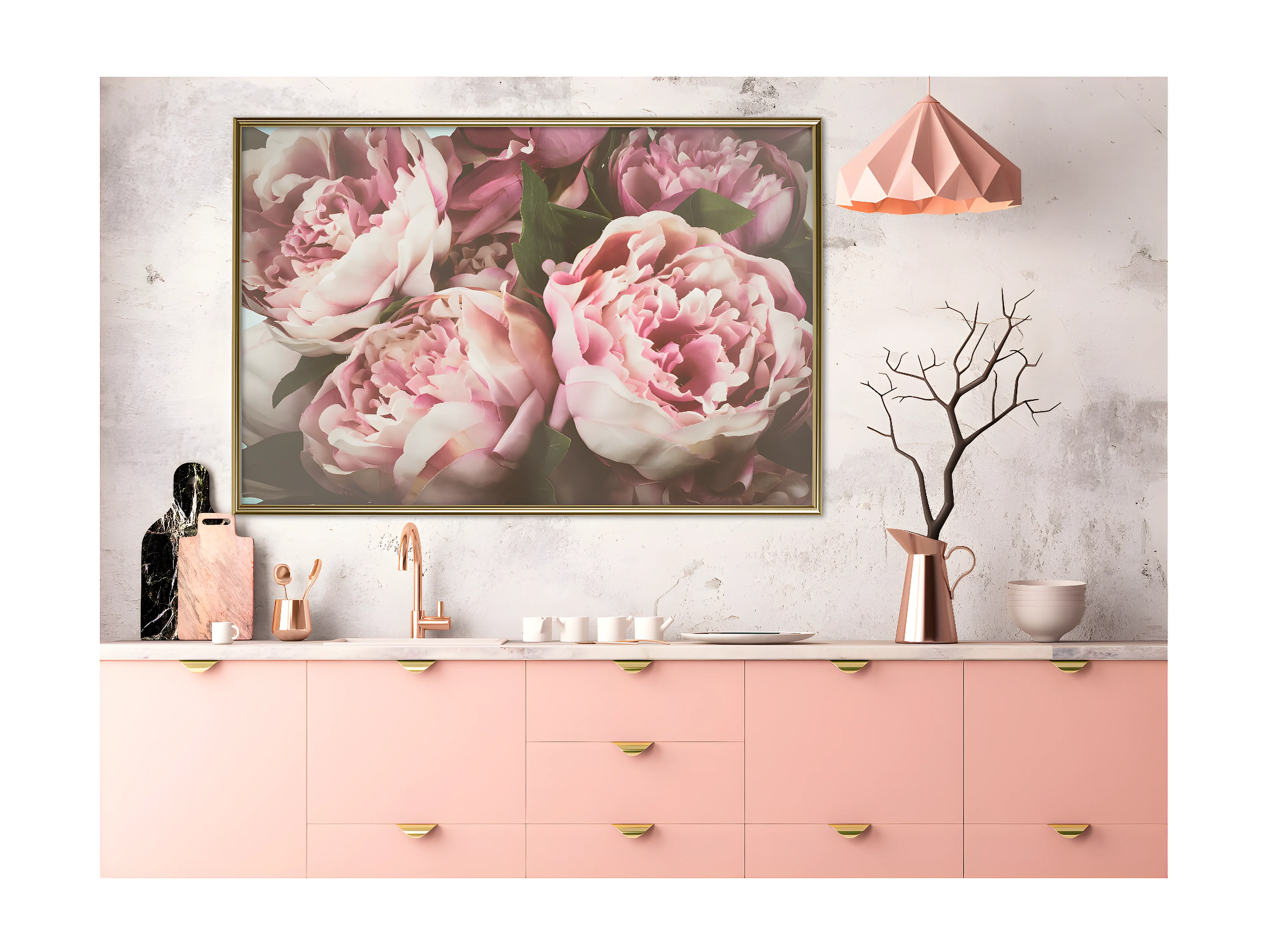 Affiche Murale Encadrée "Pastel Peonies" 90 x 60 cm Or