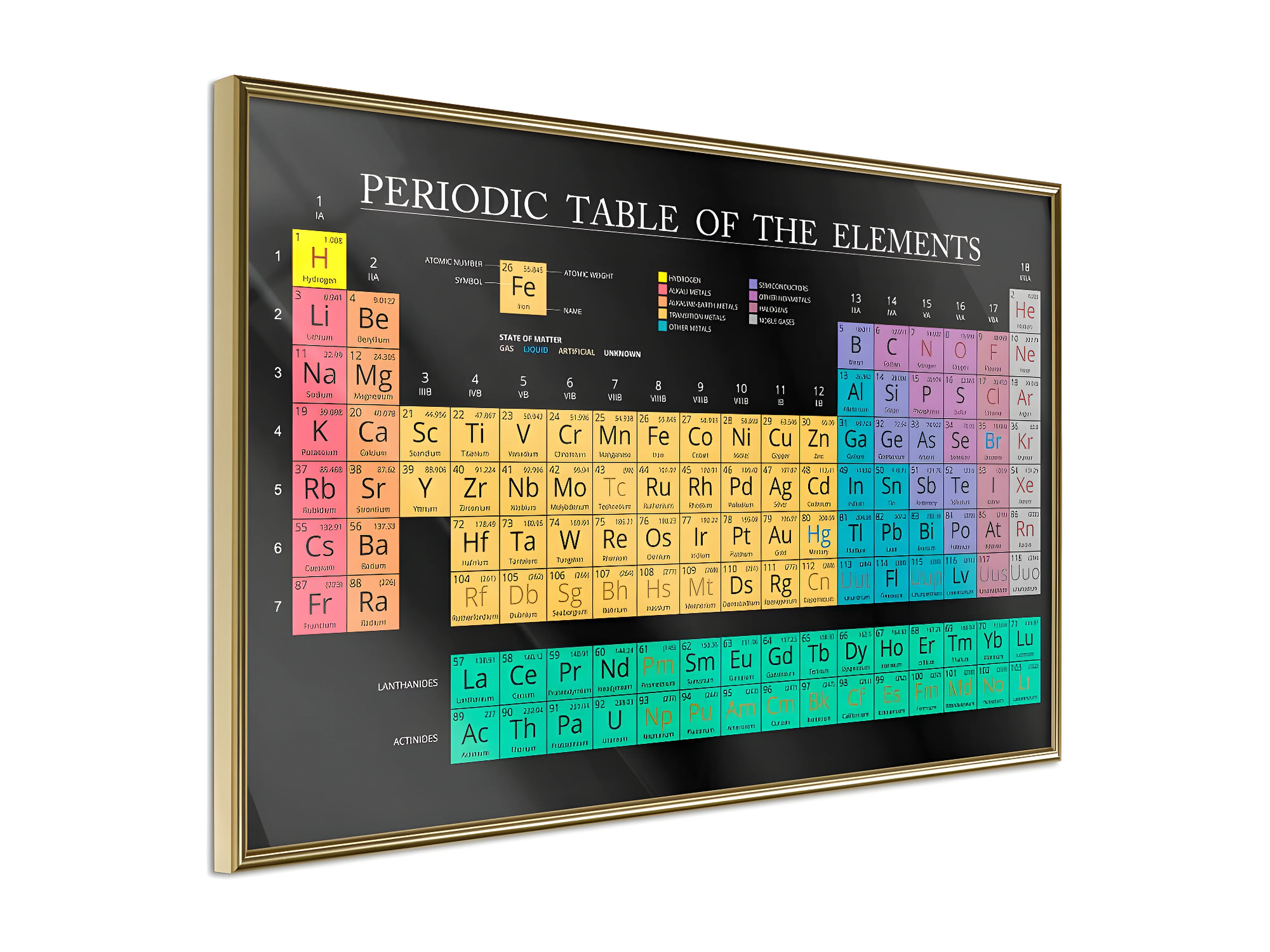 Affiche Murale Encadrée "Periodic Table of the Elements" 60 x 40 cm Or