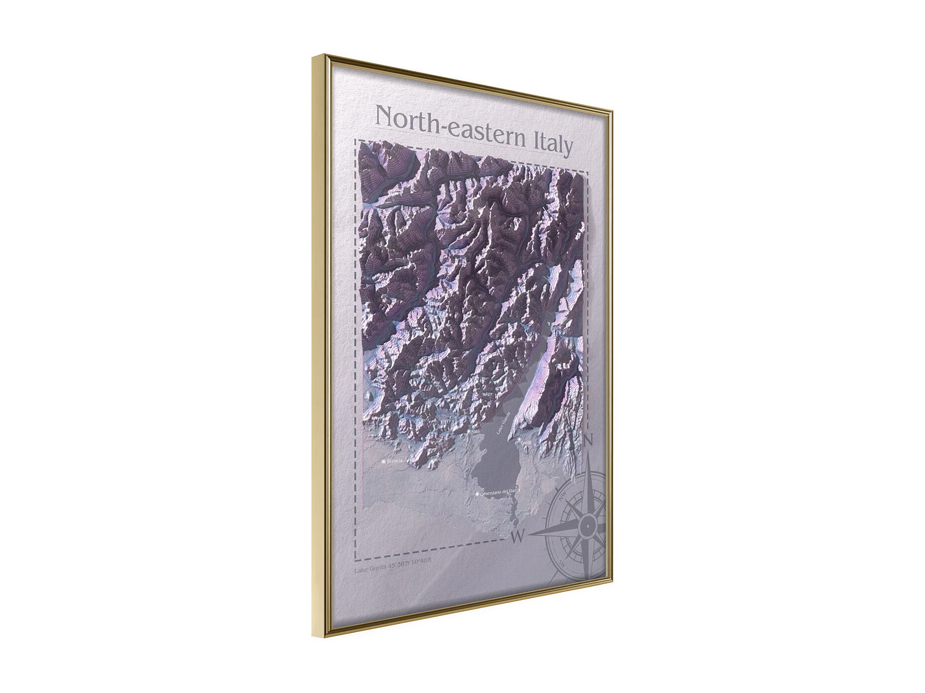 Affiche Murale Encadrée "Raised Relief Map North-Eastern Italy" 21 x 30 cm Or