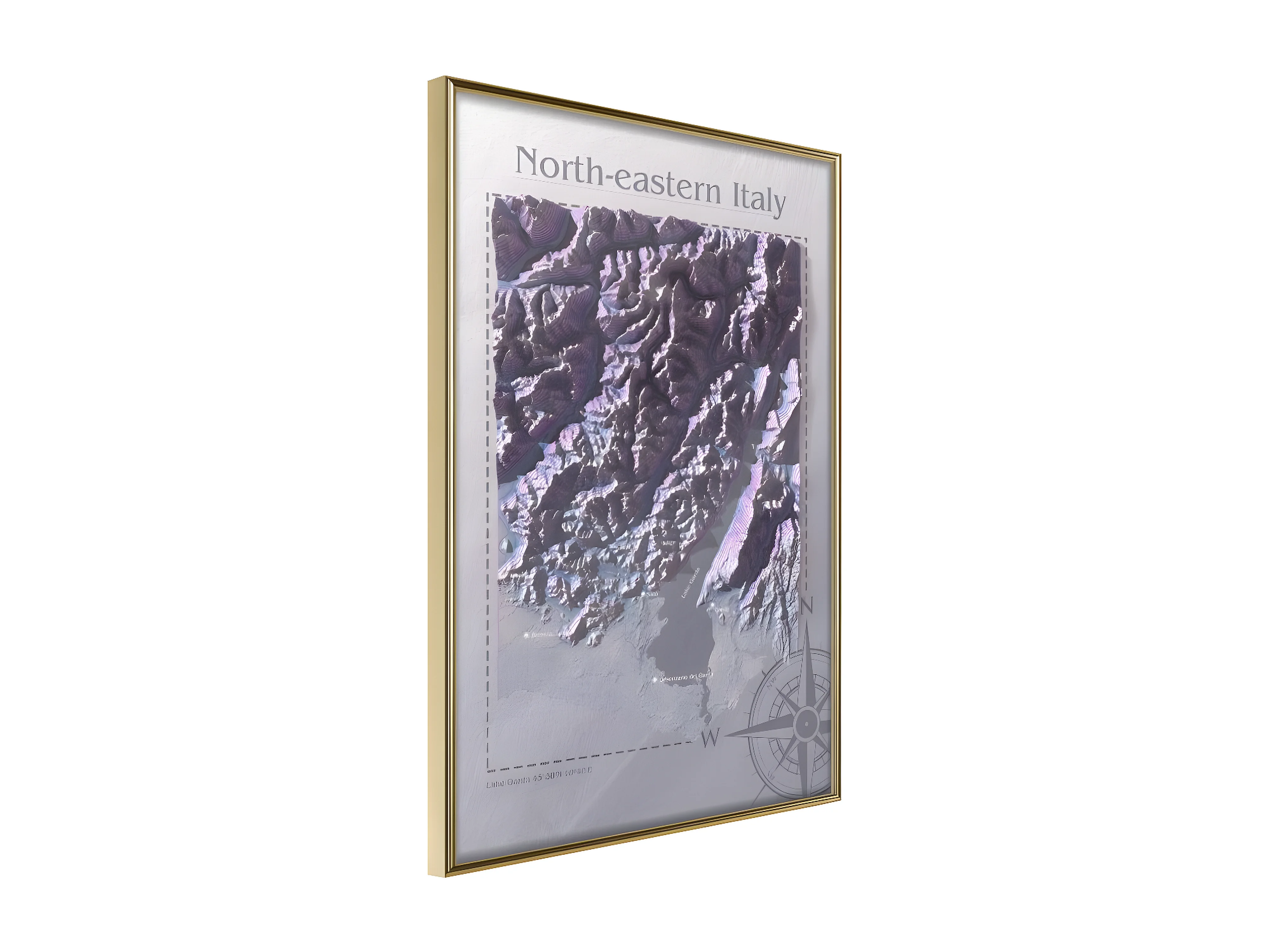 Affiche Murale Encadrée "Raised Relief Map North-Eastern Italy" 40 x 60 cm Or