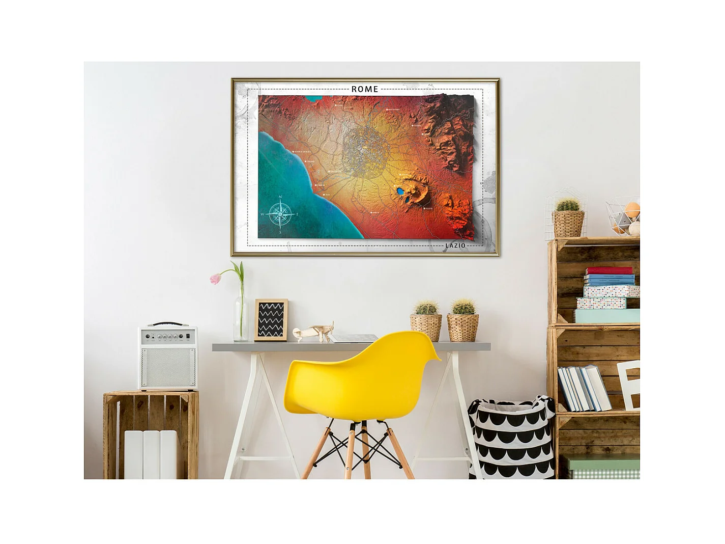 Affiche Murale Encadrée "Raised Relief Map Rome" 90 x 60 cm Or