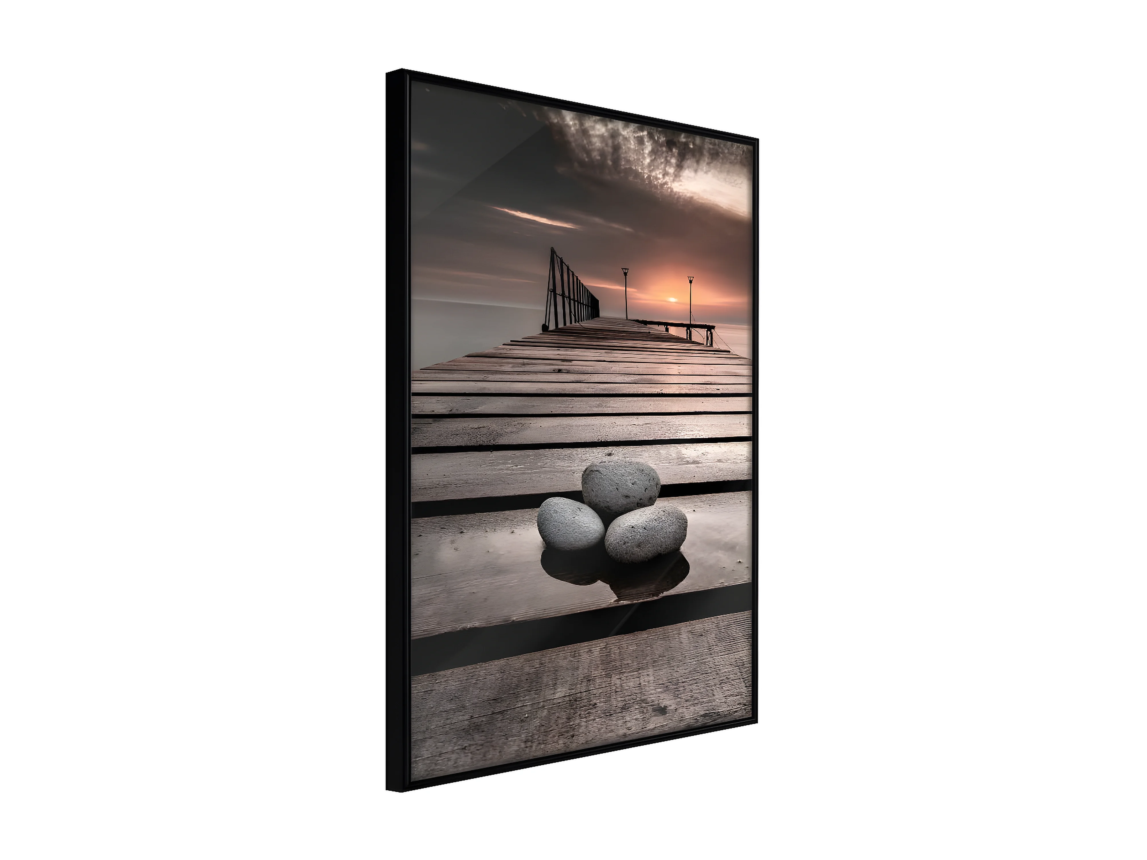 Affiche Murale Encadrée "Stones on the Pier" 21 x 30 cm Noir