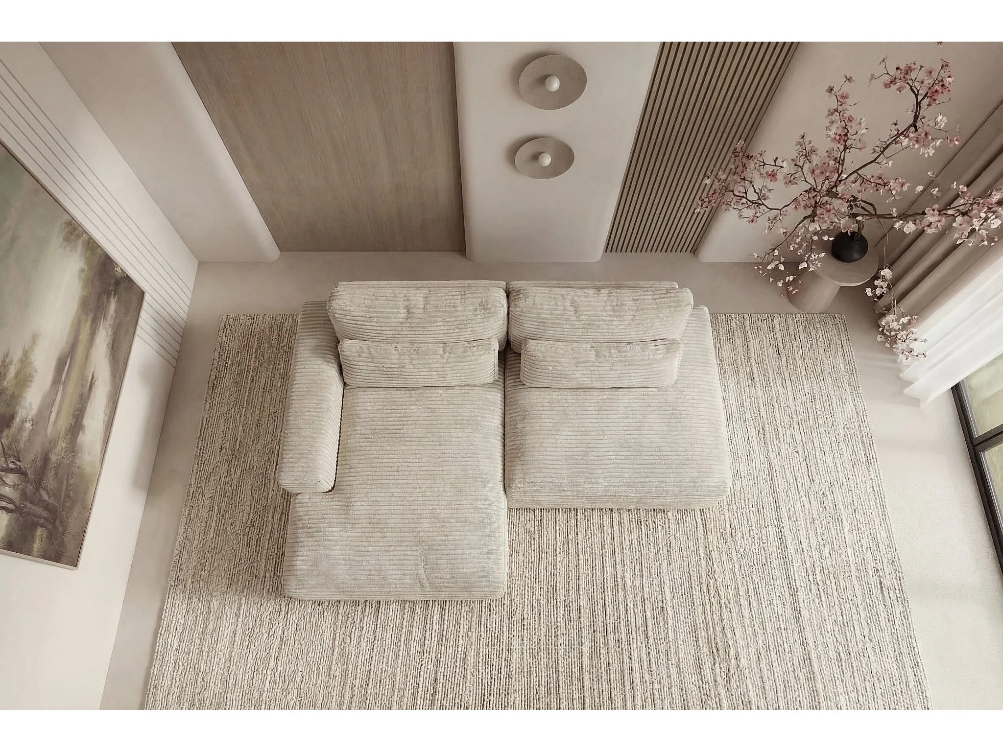 AGATHE - Canapé d'angle convertible gros velours côtelé 4 places - Beige - Gauche