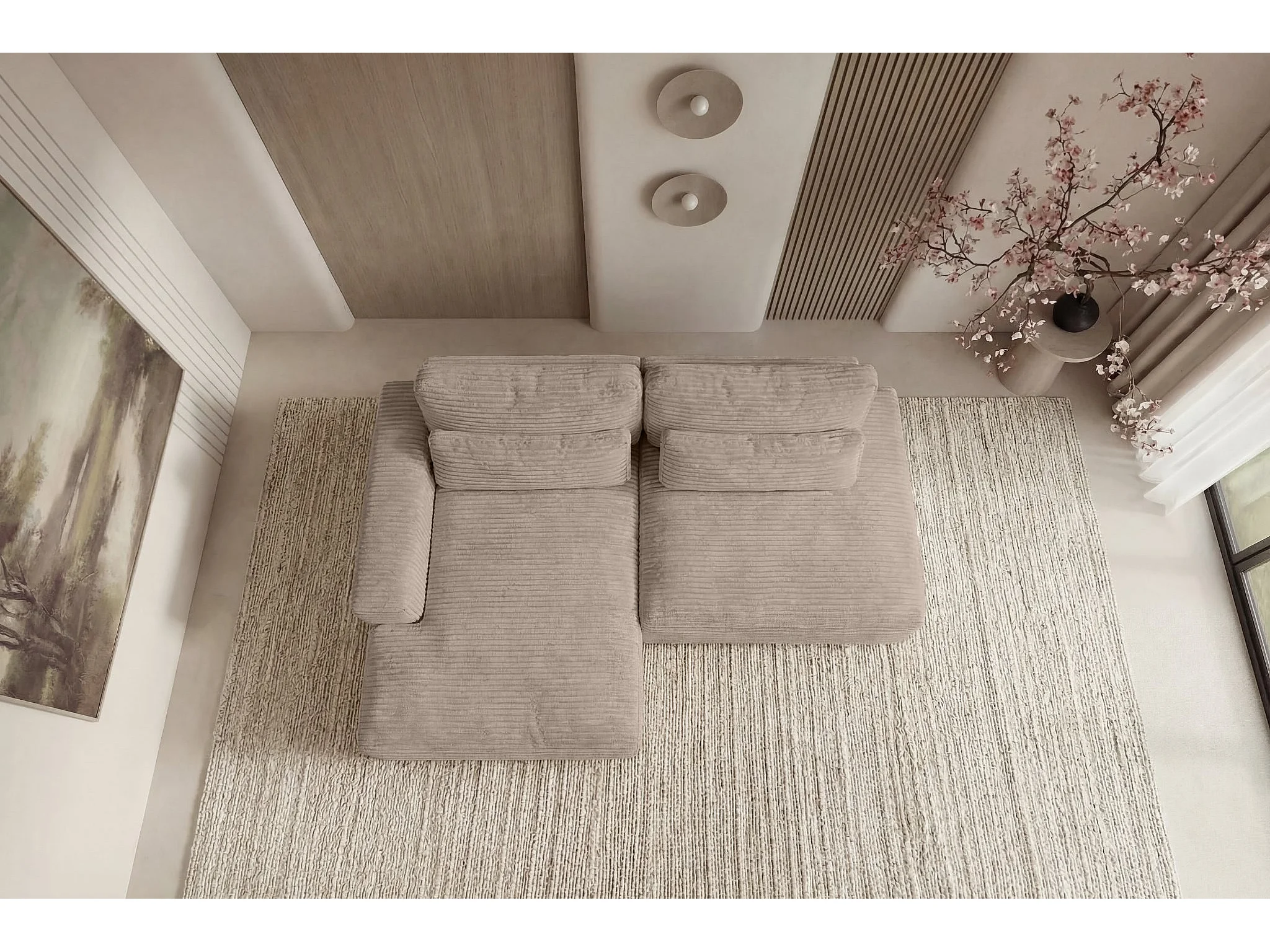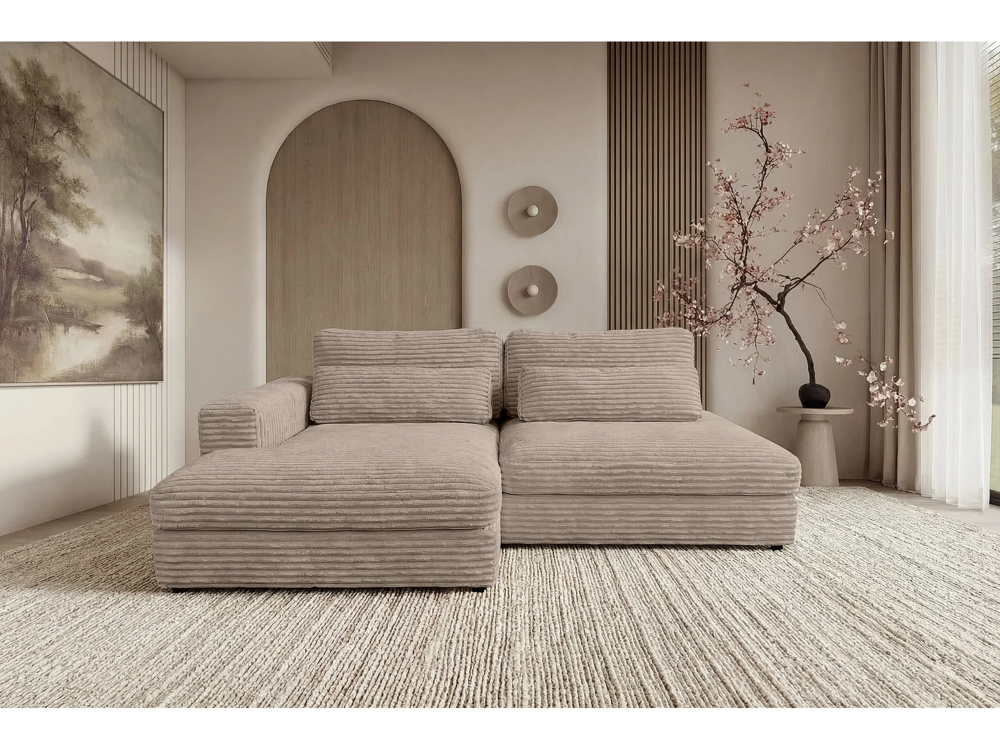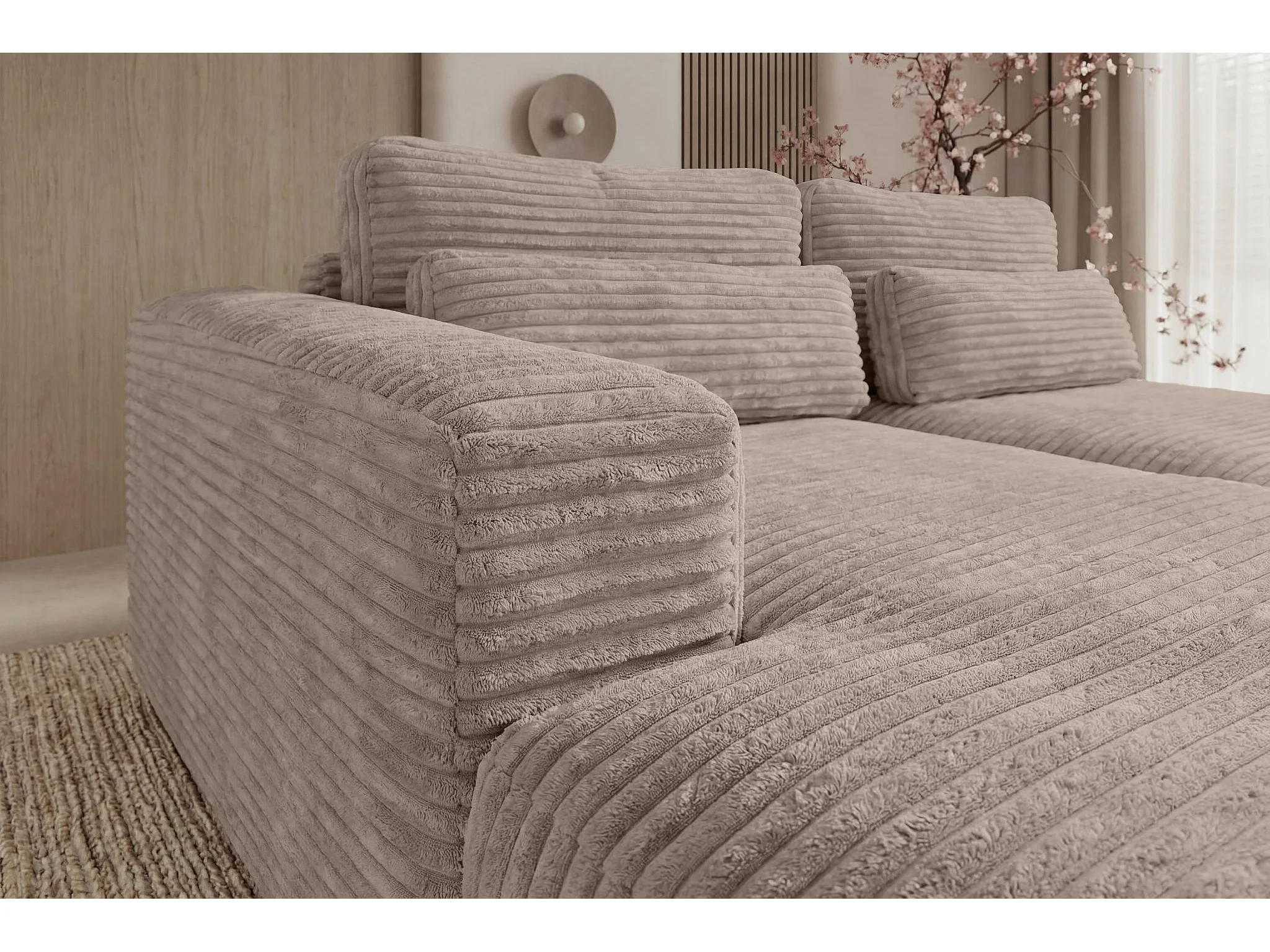 AGATHE - Canapé d'angle convertible gros velours côtelé 4 places - Café - Droit