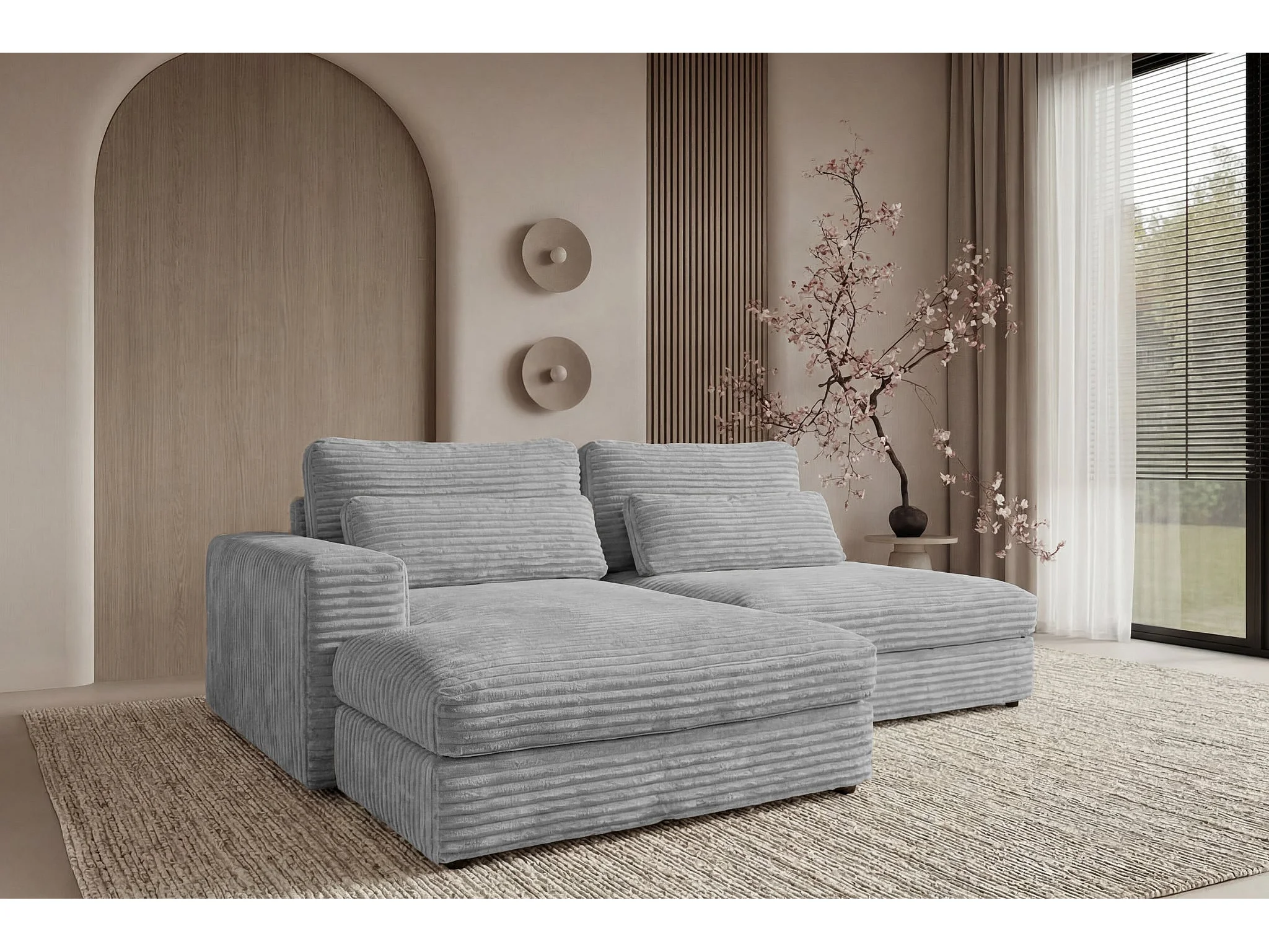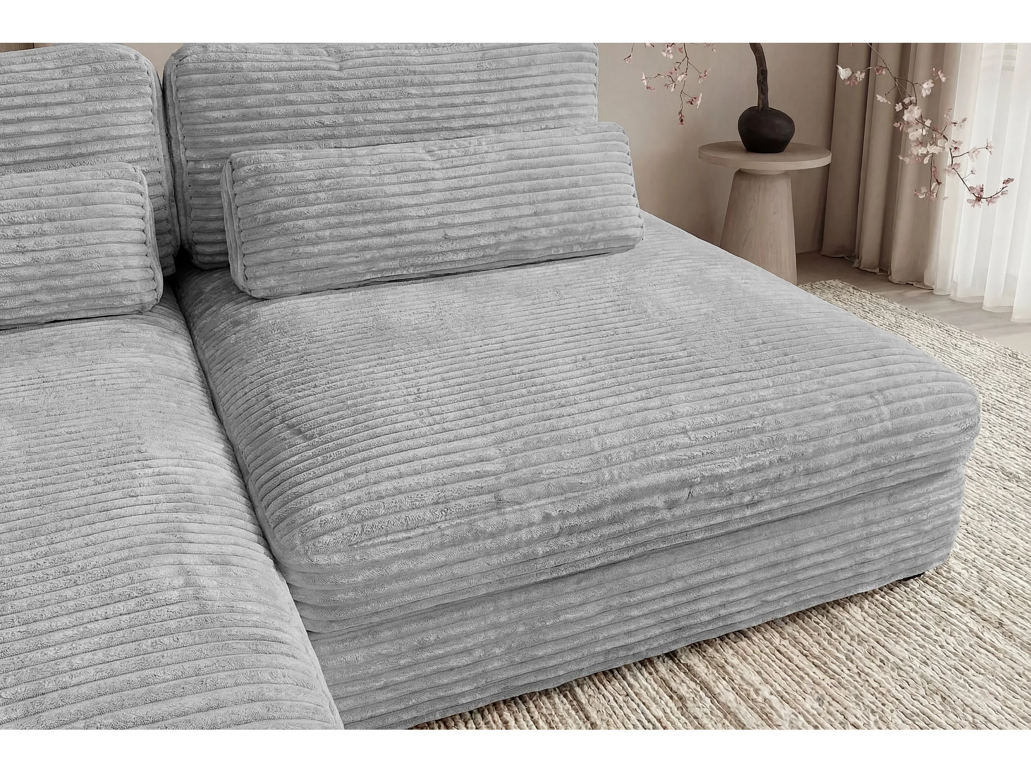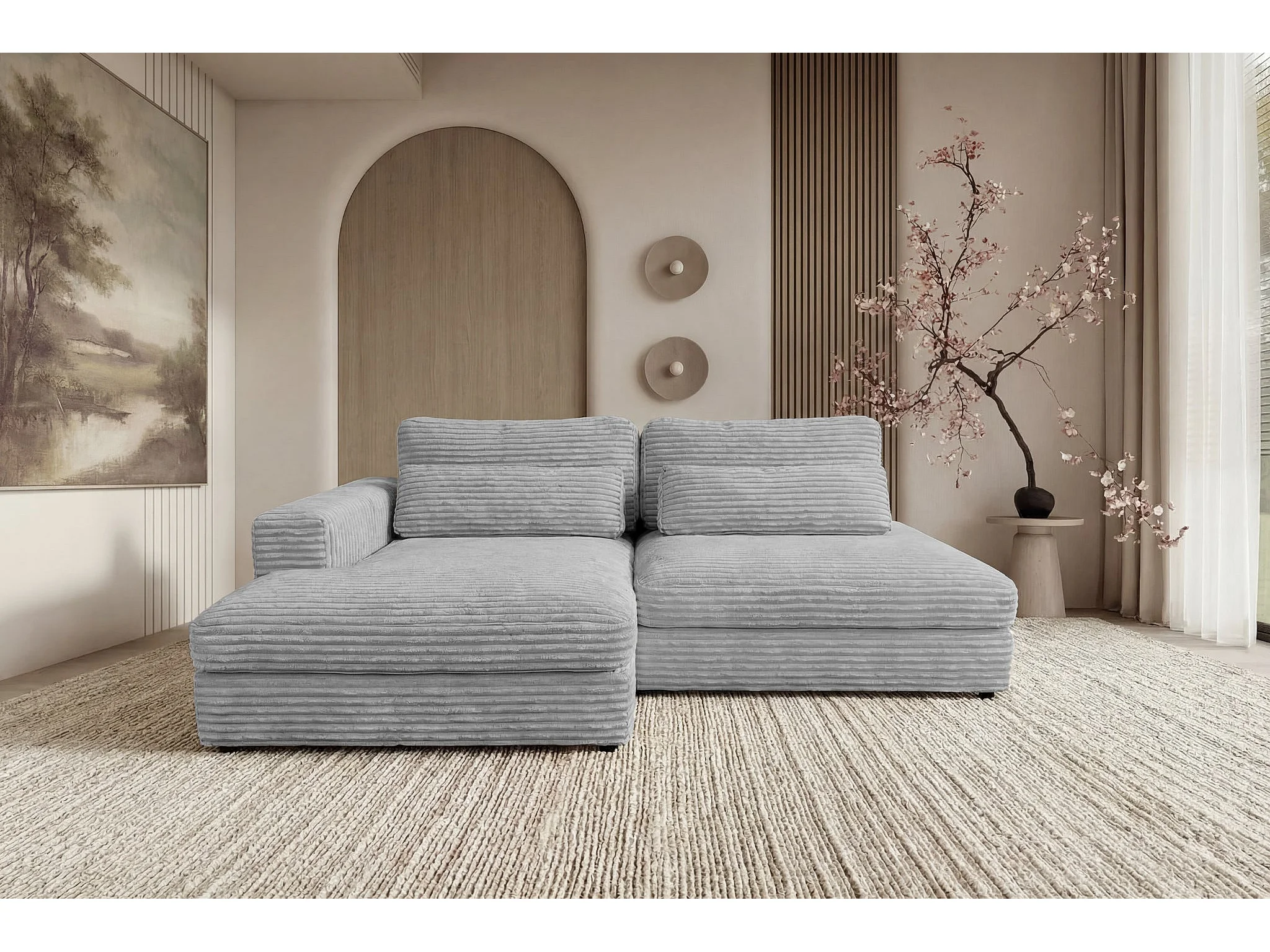 AGATHE - Canapé d'angle convertible gros velours côtelé 4 places - Gris clair - Gauche
