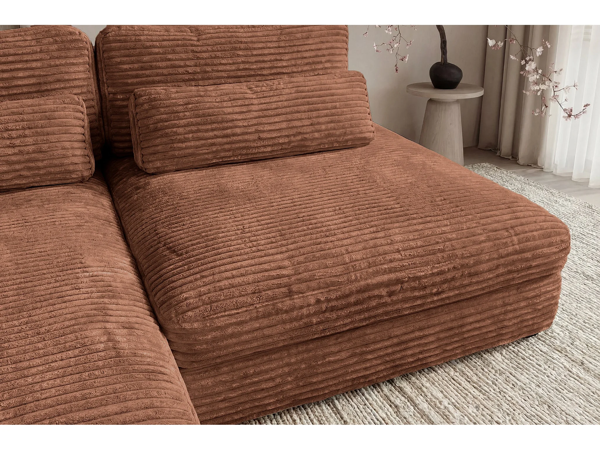 AGATHE - Canapé d'angle convertible gros velours côtelé 4 places - Terracotta - Droit