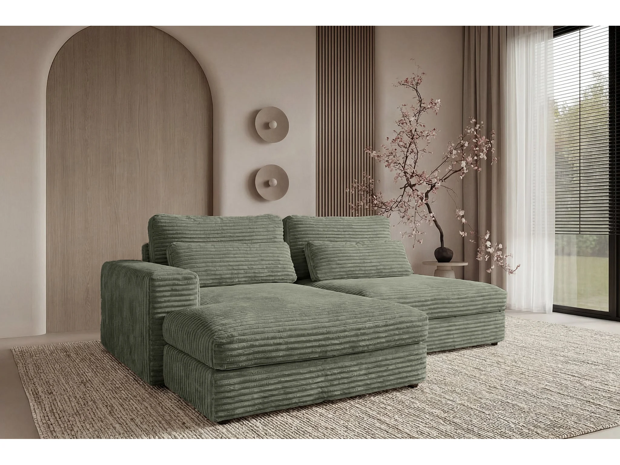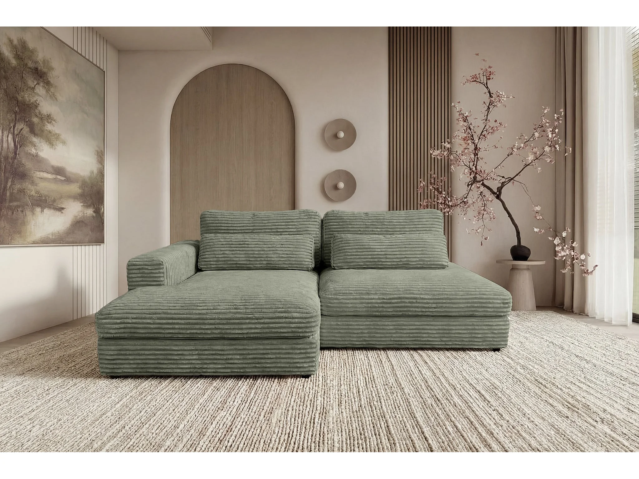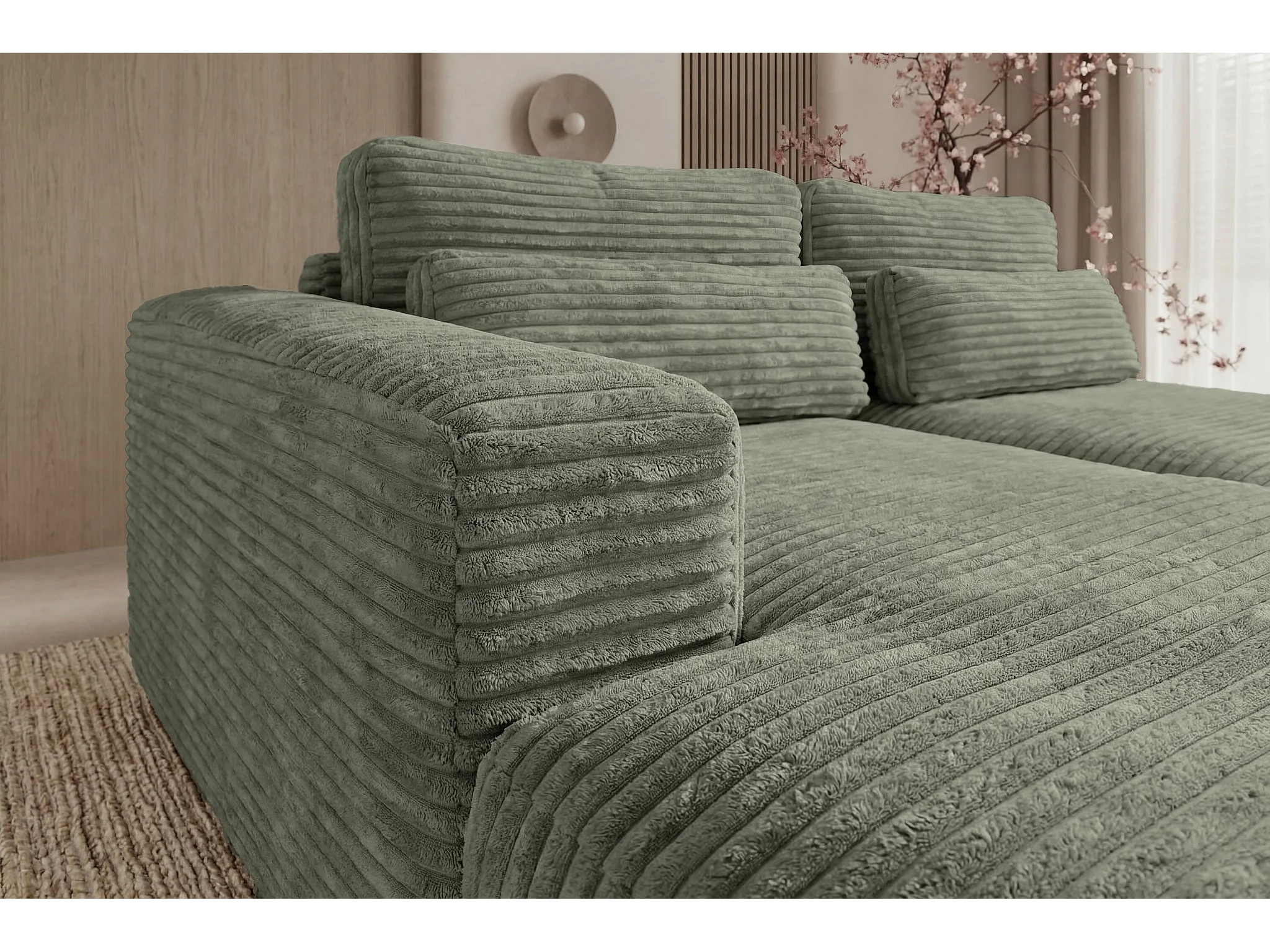 AGATHE - Canapé d'angle convertible gros velours côtelé 4 places - Vert - Gauche