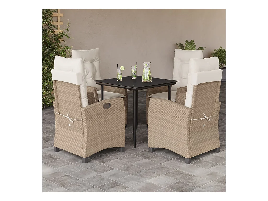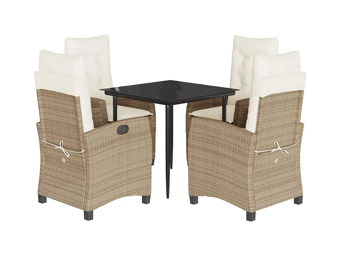Agerskov Ensemble à manger de jardin avec coussins 5pcs Beige poly rotin