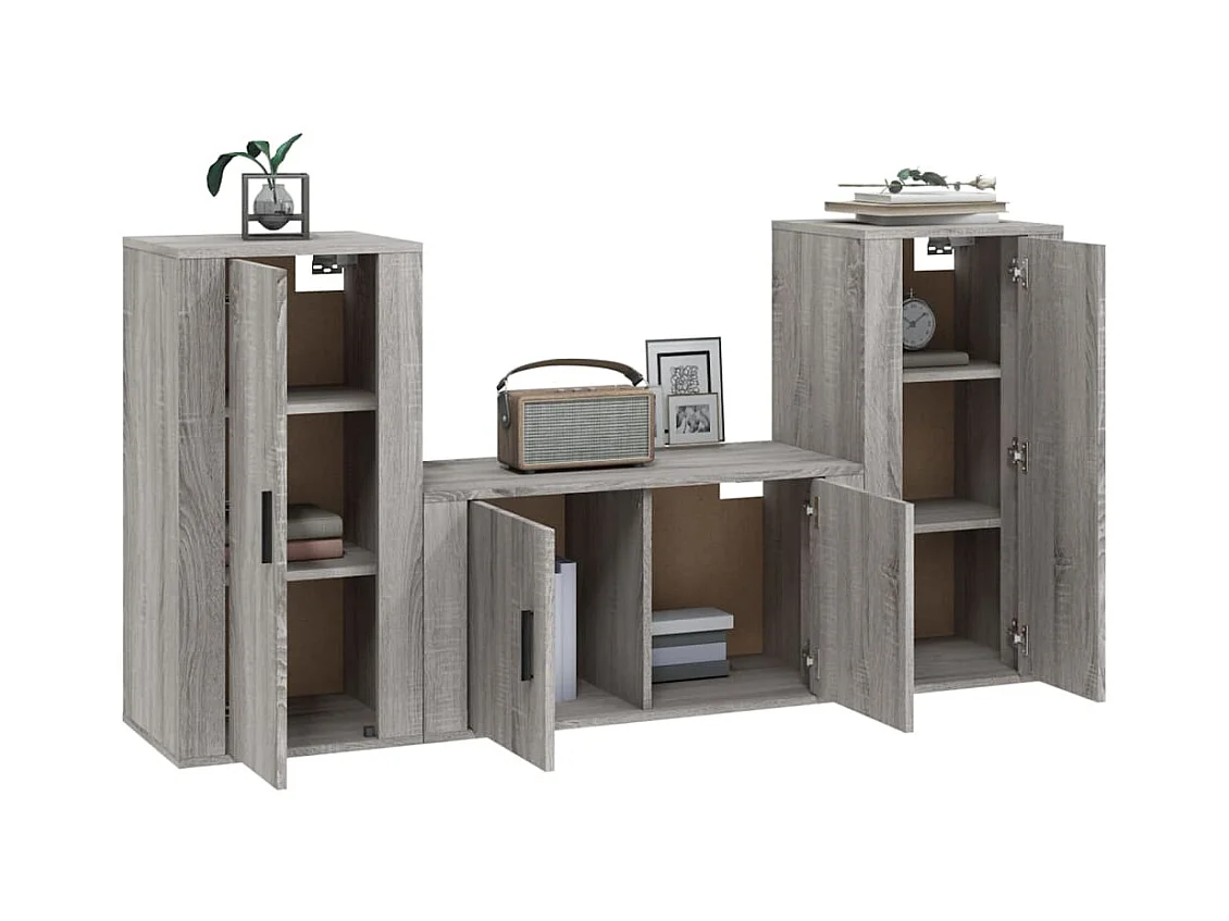 Agnetha Ensemble de meubles TV 3 pcs Sonoma gris Bois d'ingénierie