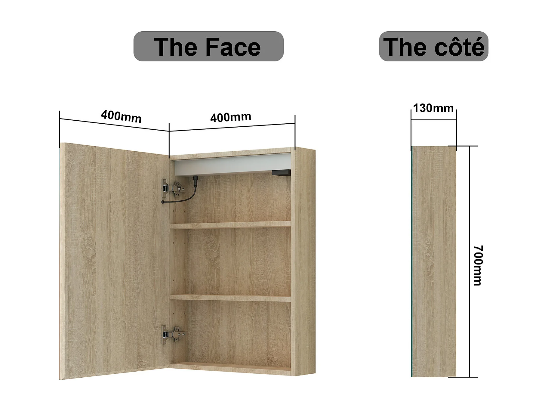 AICA Armoire murale de salle de bain LED, avec Prise Rasoir, 70x60cm, Anti-Buée + Tricolore LED, Chêne