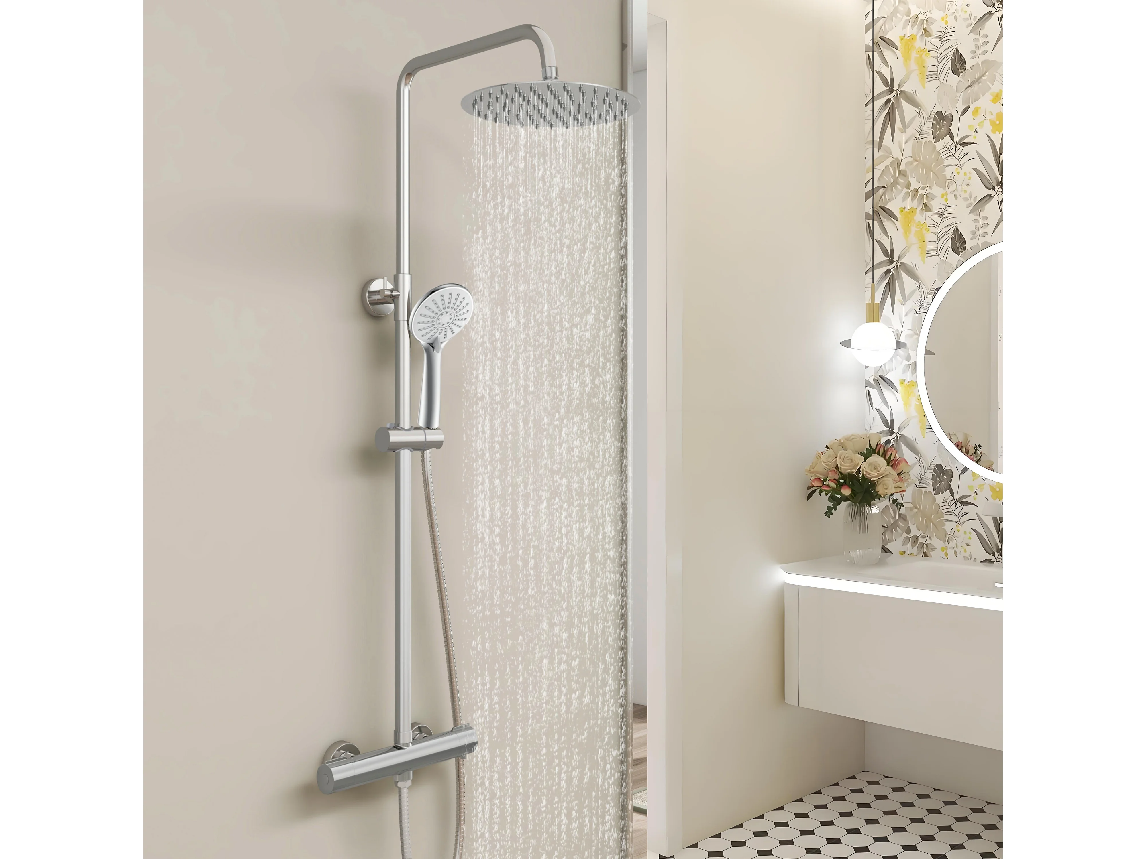 AICA Colonne de Douche Thermostaique 38 °C Ensemble de douche avec Tête de Douche de 10 Pouces Douchette 3 Jets Hauteur Réglable- Ronde
