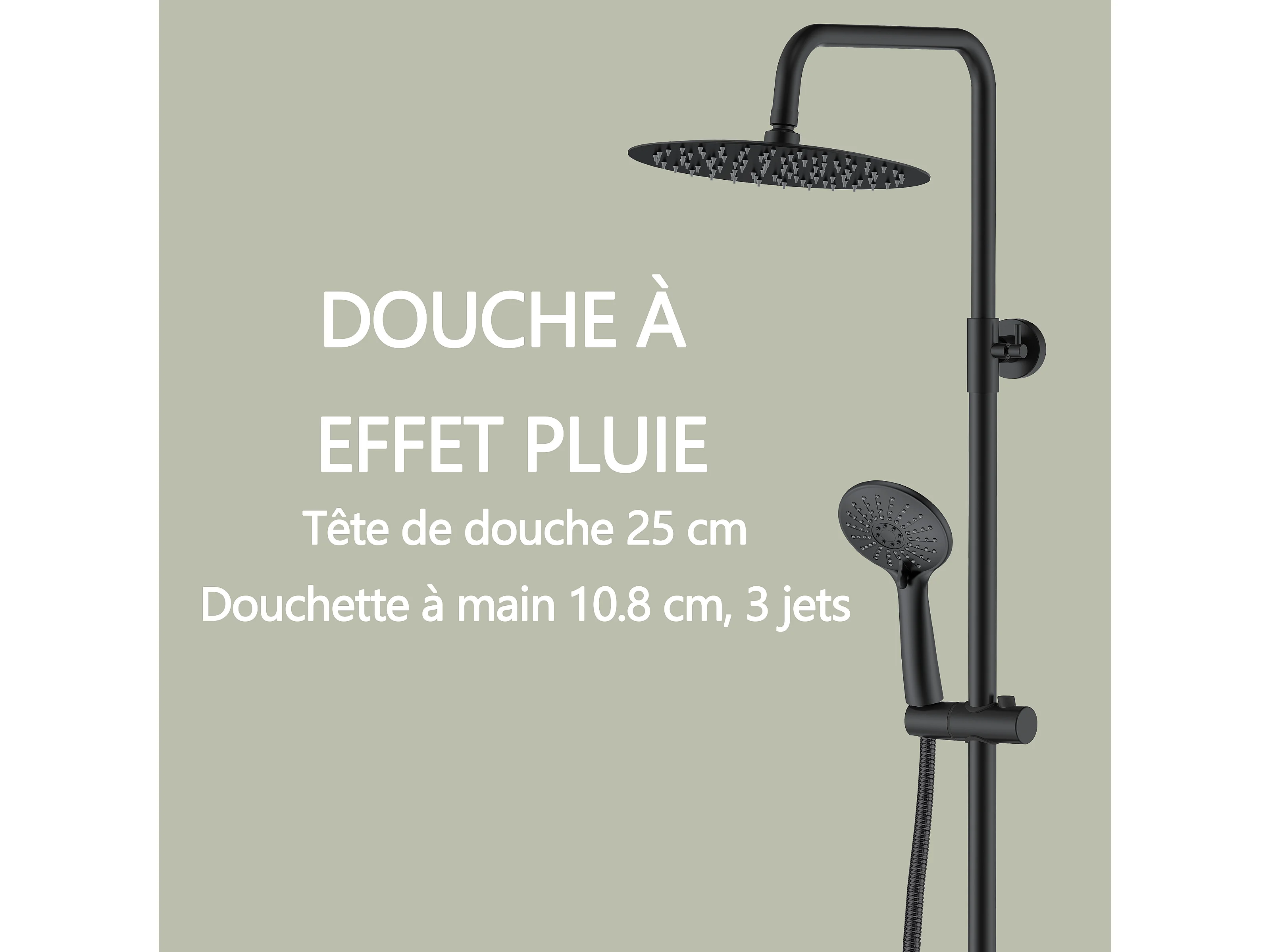 AICA colonne de douche de salle de bain avec douche de tête ronde 250 mm, douchette 3 fonctions, hauteur réglable 750-1200 mm,noir