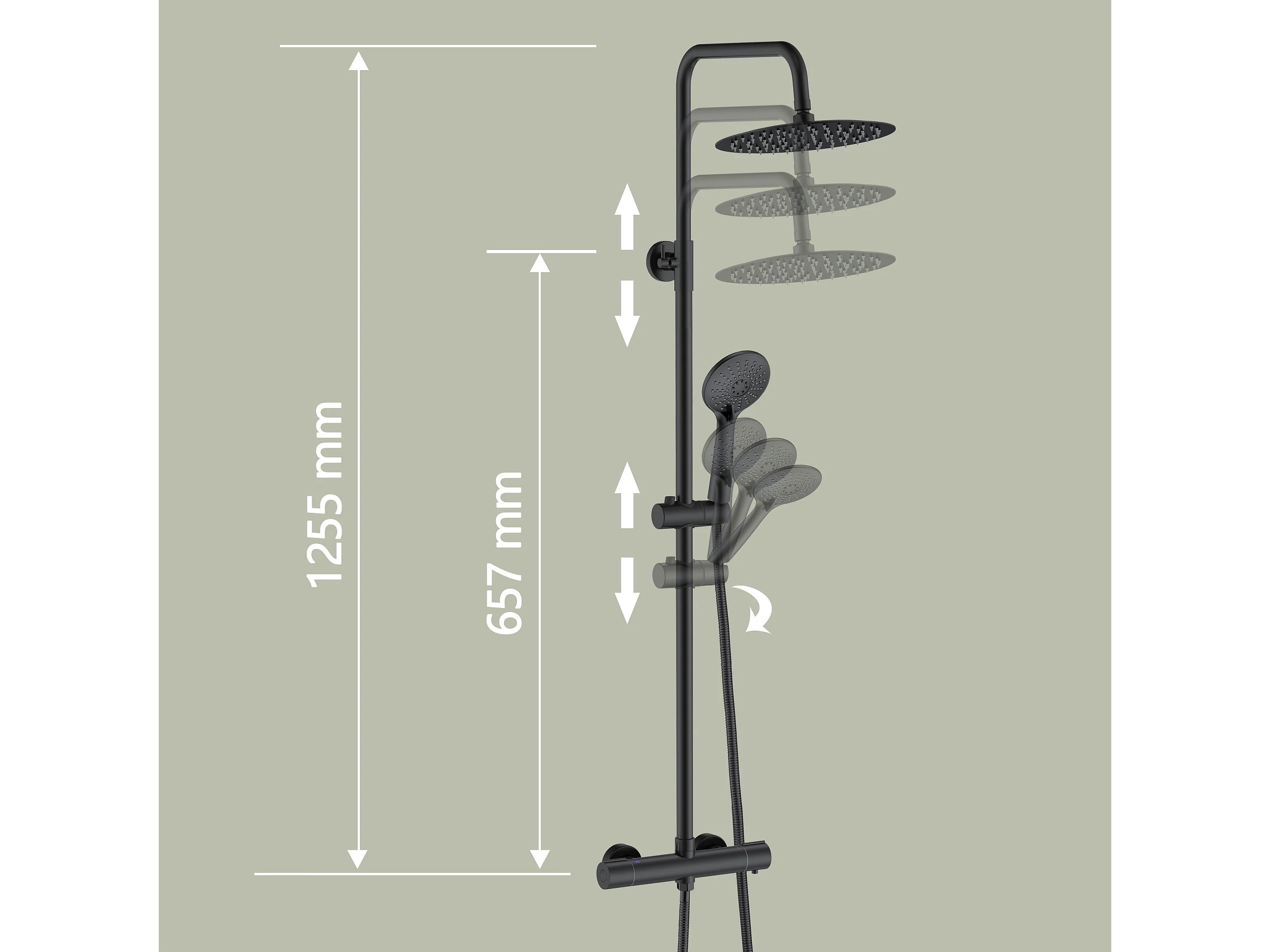 AICA Colonne de douche thermostatique en laiton, Système de douche thermostatique 38 °C, Réglable en hauteur 730-1150 mm, Noir