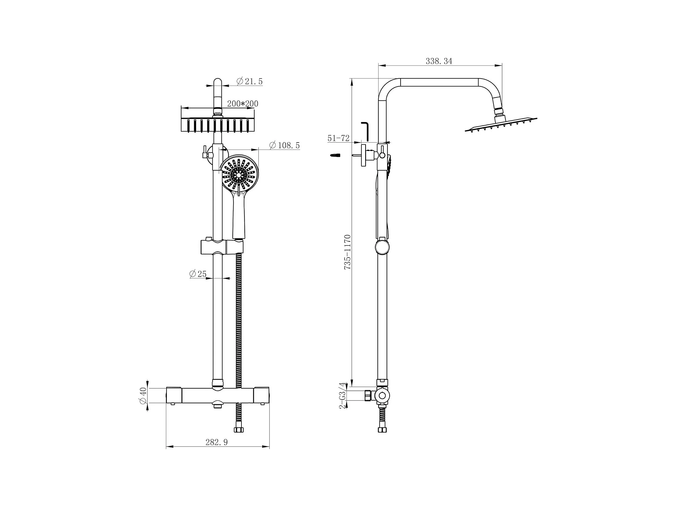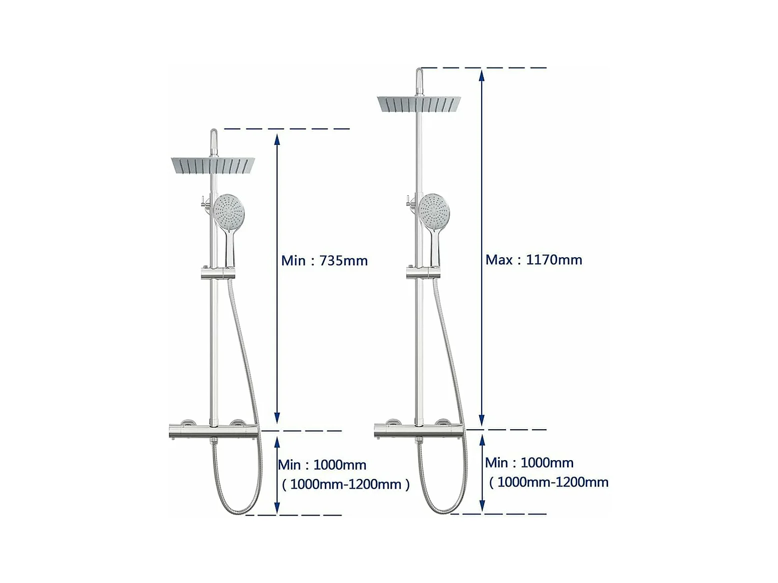 AICA colonne de douche thermostatique avec pomme de douche 10", hauteur réglable 76-118 cm