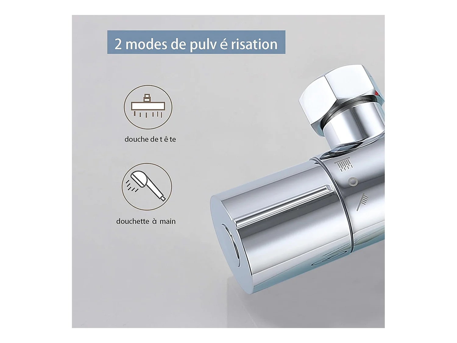 AICA Colonne de douche thermostatique chromée, avec douche de tête ronde et douchette à main réglable en plusieurs modes