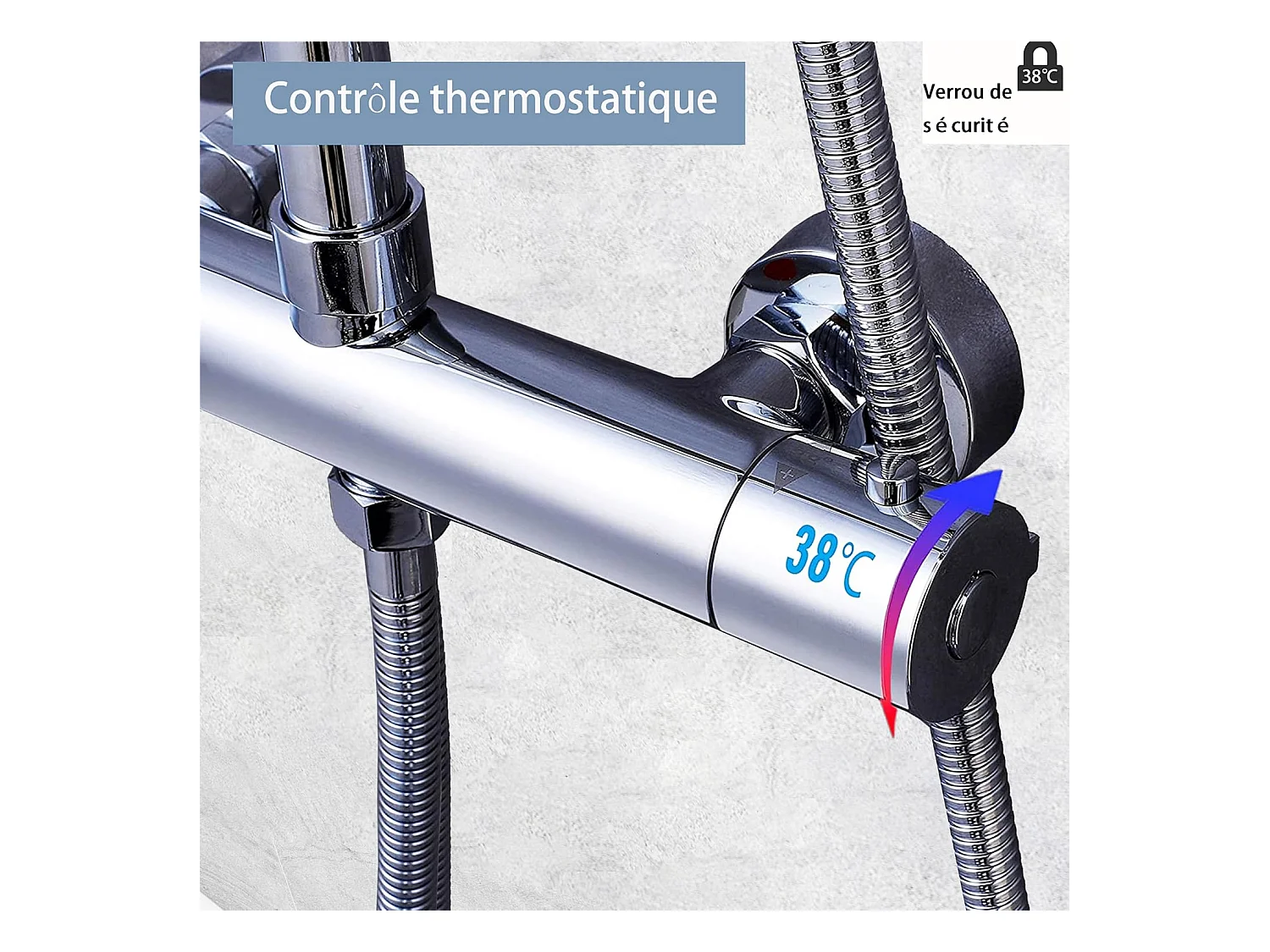 AICA colonne de douche thermostatique en acier inoxydable avec douchette 3 jets, réglable en hauteur