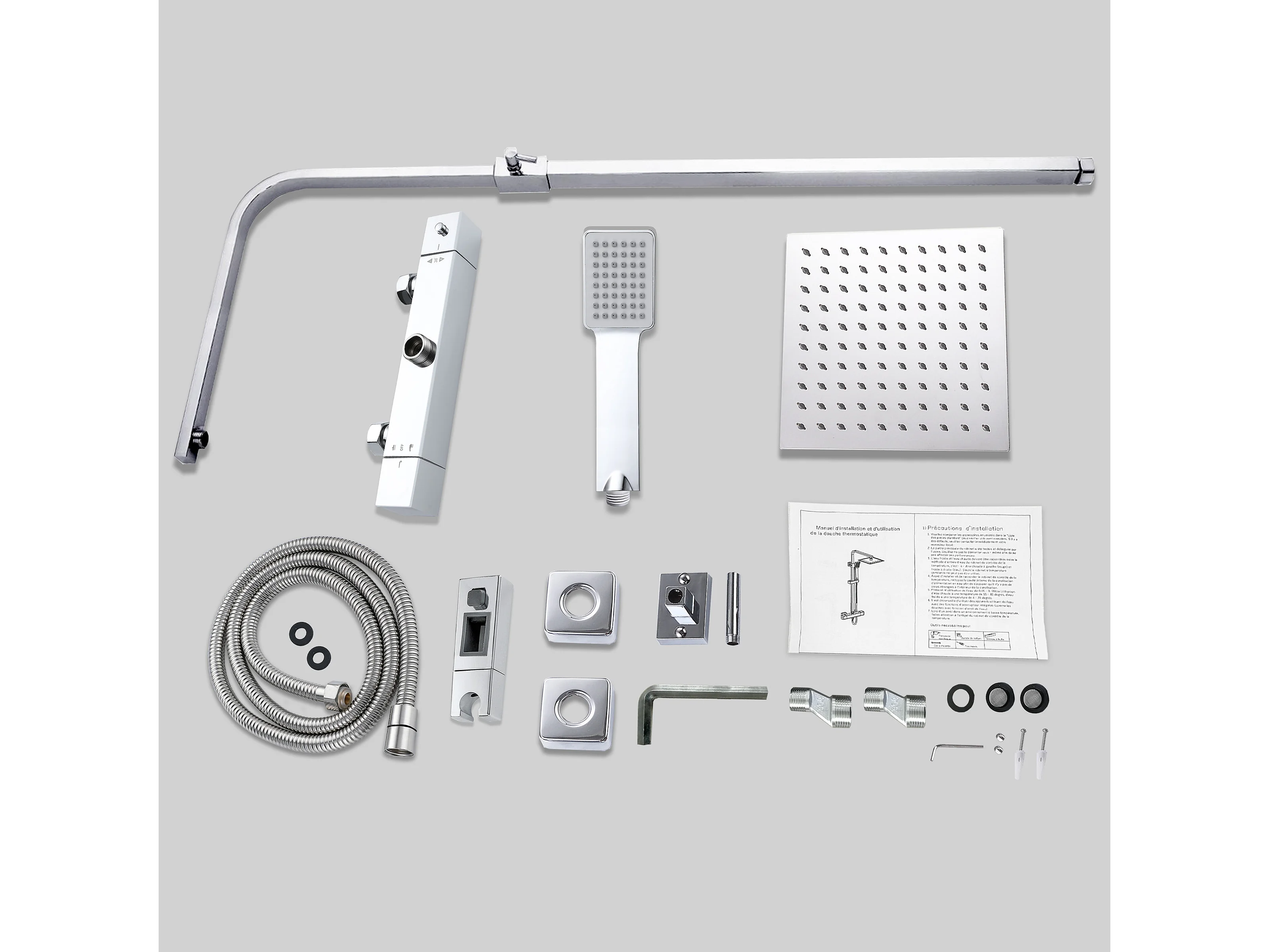 Colonne de douche thermostatique AICA- Ensemble de douche carrée en acier inoxydable- Système douche réglable en hauteur- Chromé