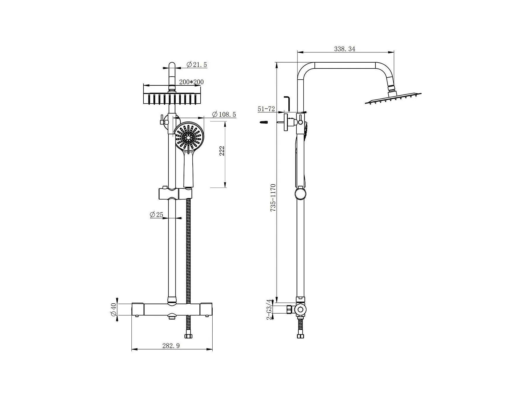 AICA colonne de douche en acier inoxydable avec douche de tête carrée 250 mm, douchette 3 fonctions, hauteur réglable