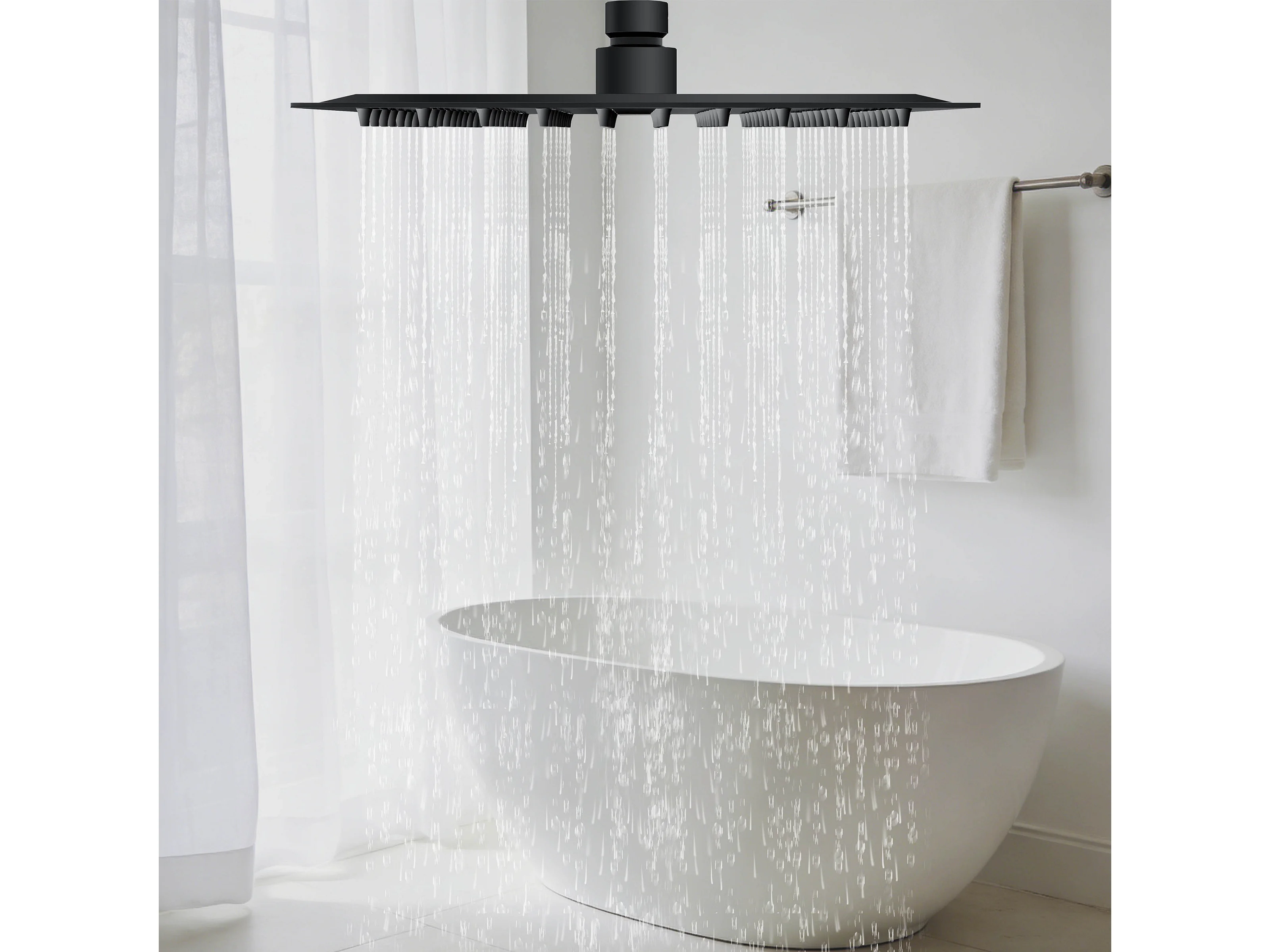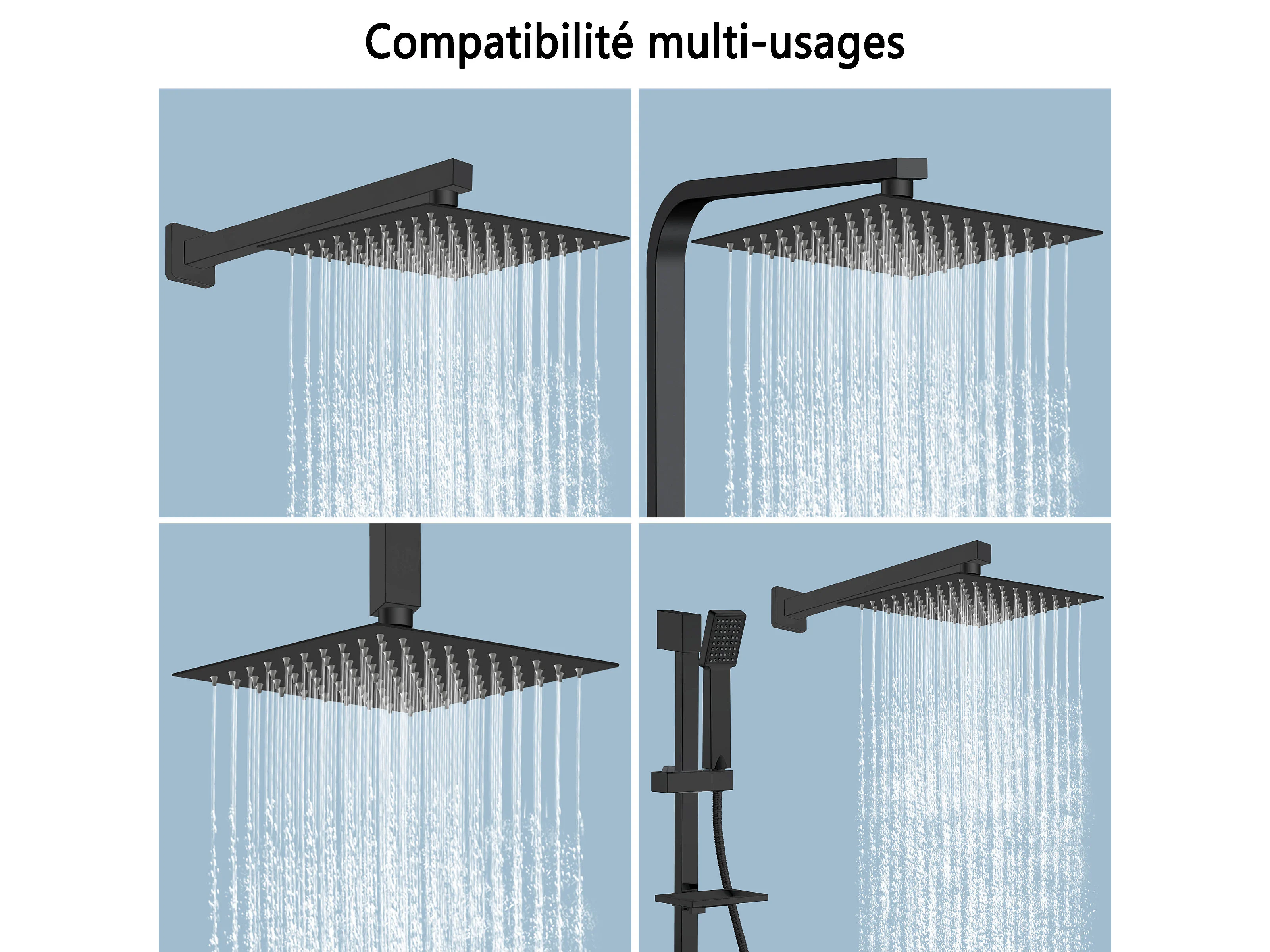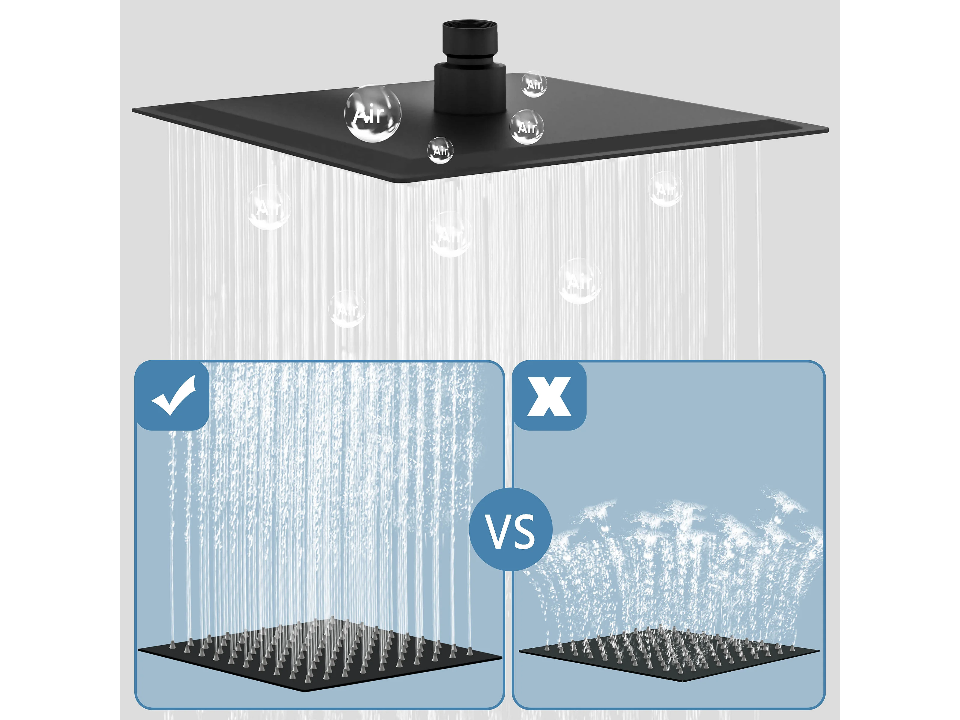 AICA Douche de tête carrée 20 x 20 cm, Filtage universel 1/2, Aicer inoxydable, Buses en silicone anticalcaire, Noir
