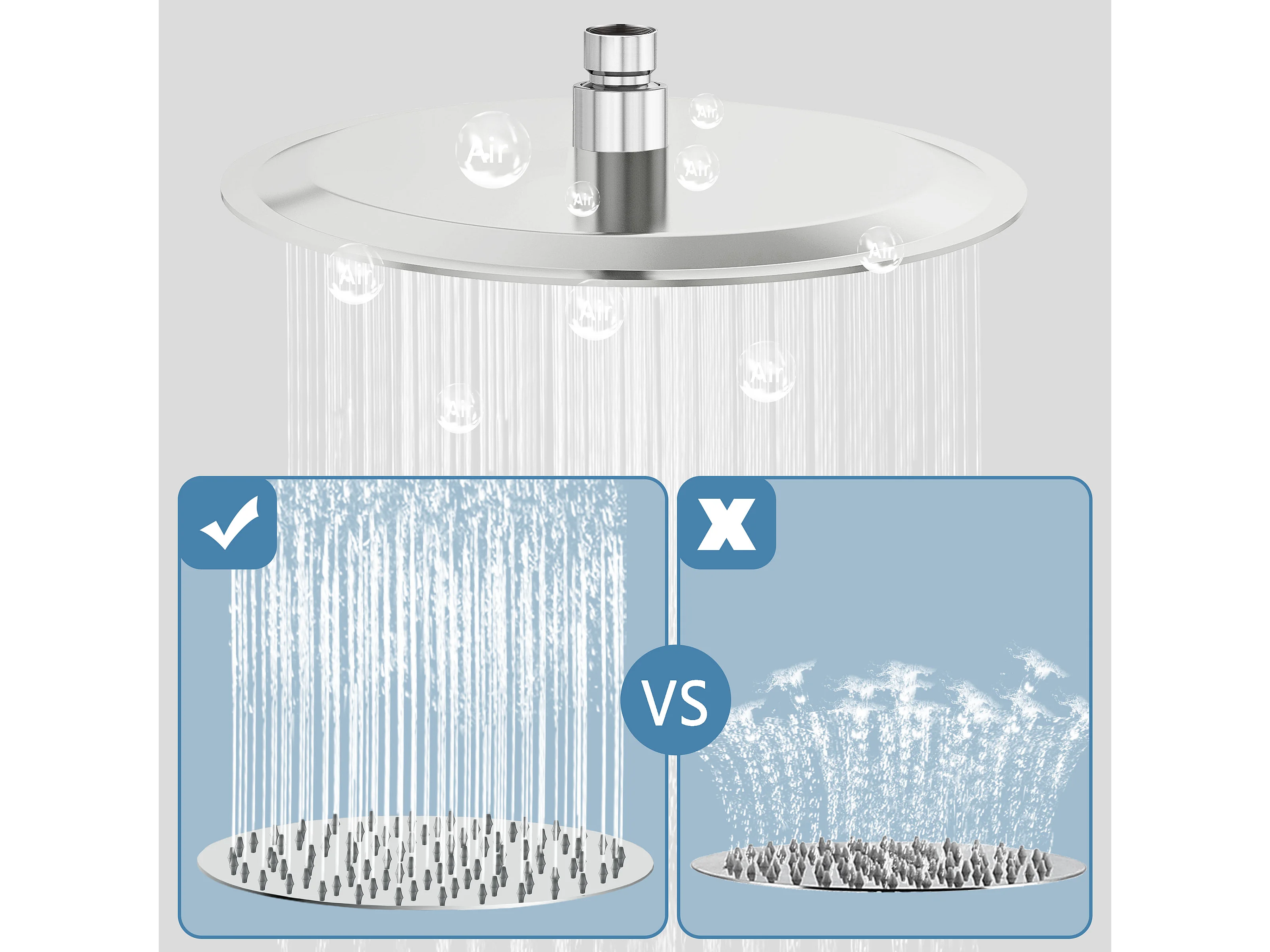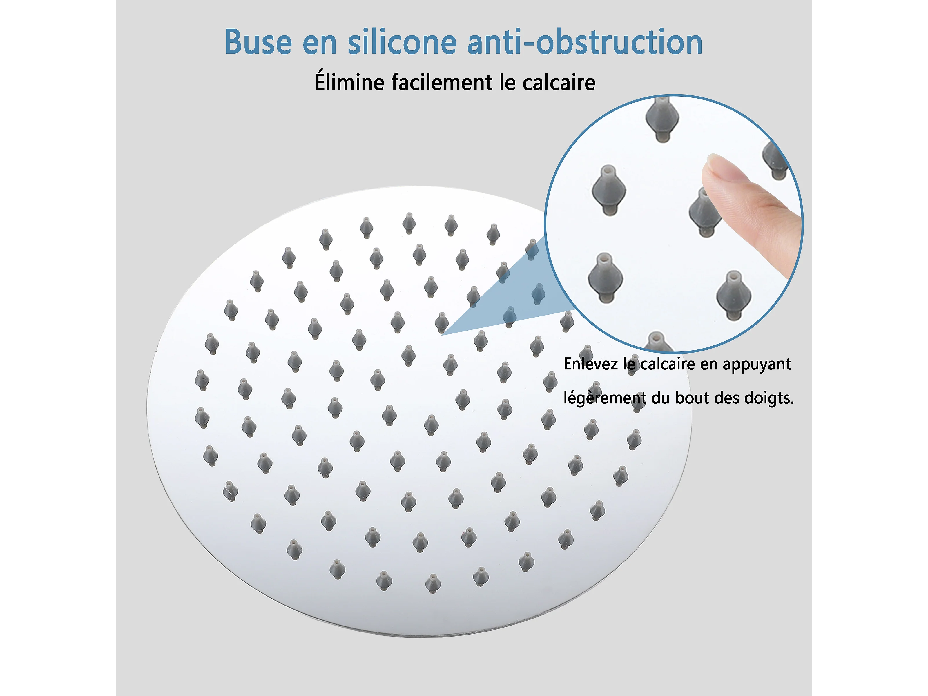 AICA Douche de tête ronde 20 cm, Filtage universel 1/2, Aicer inoxydable, Buses en silicone anticalcaire, Chrome
