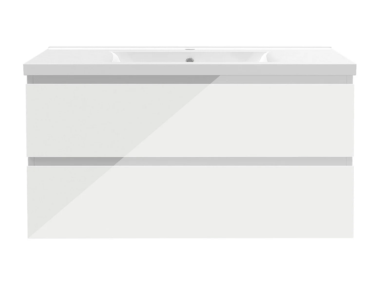 AICA Ensemble de meubles de salle de bain 100 cm avec vasque suspendu 2 portes, Brillance, Blanc