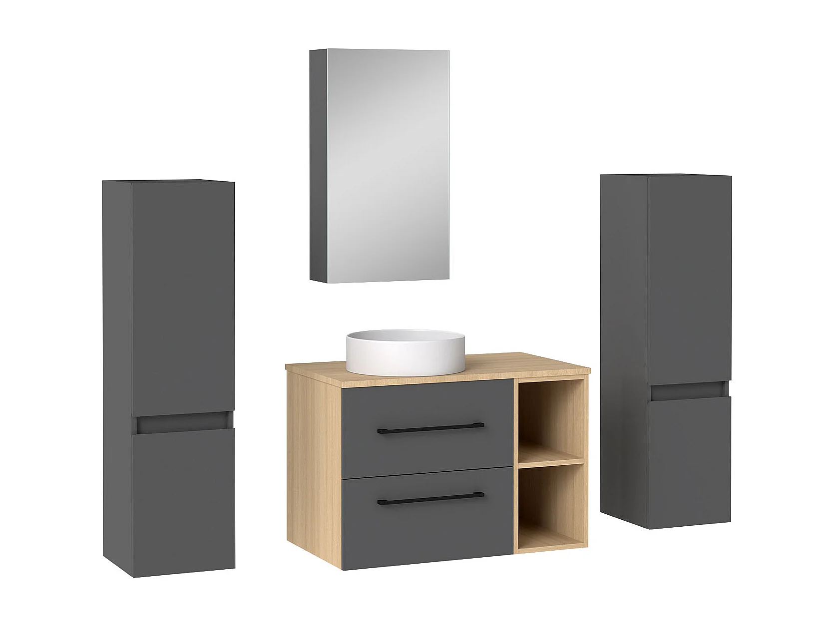 AICA Ensemble meuble de Salle de Bain Suspendu 80cm avec vasque à poser + 2*Colonne + Armoire salle de bain avec miroir