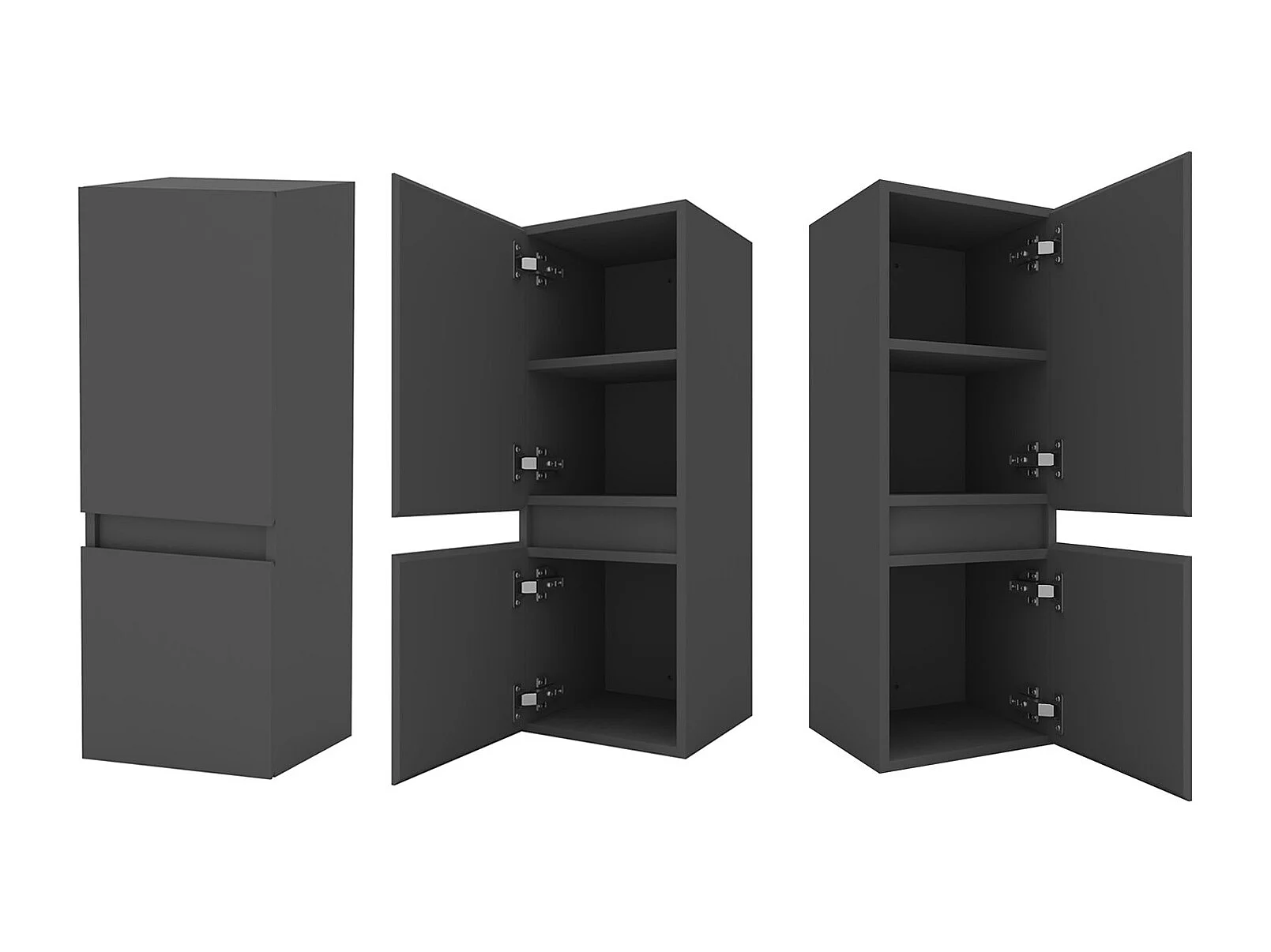Ensemble meuble vasque L.50cm 2 tiroirs + lavabo + LED miroir rond 60cm + colonne,anthracite,AICA