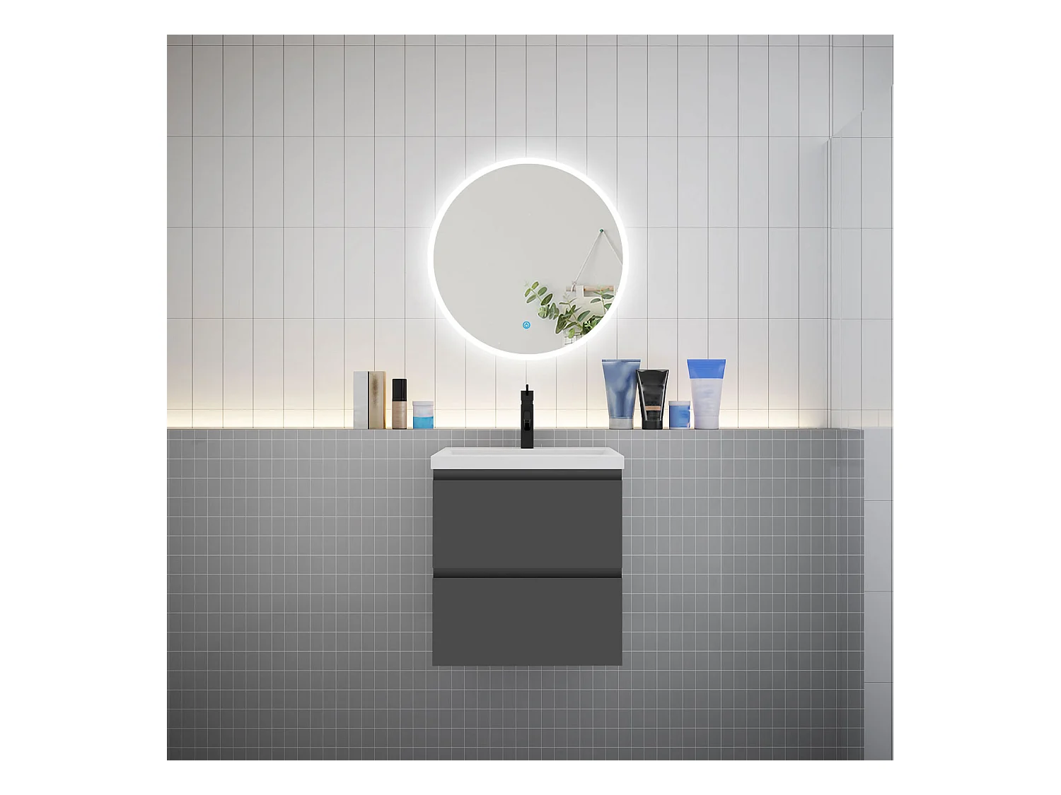 AICA Ensemble meuble de salle de bain Vasque L.50cm 2 tiroirs + lavabo + LED Miroir Rond 60cm, Blanc