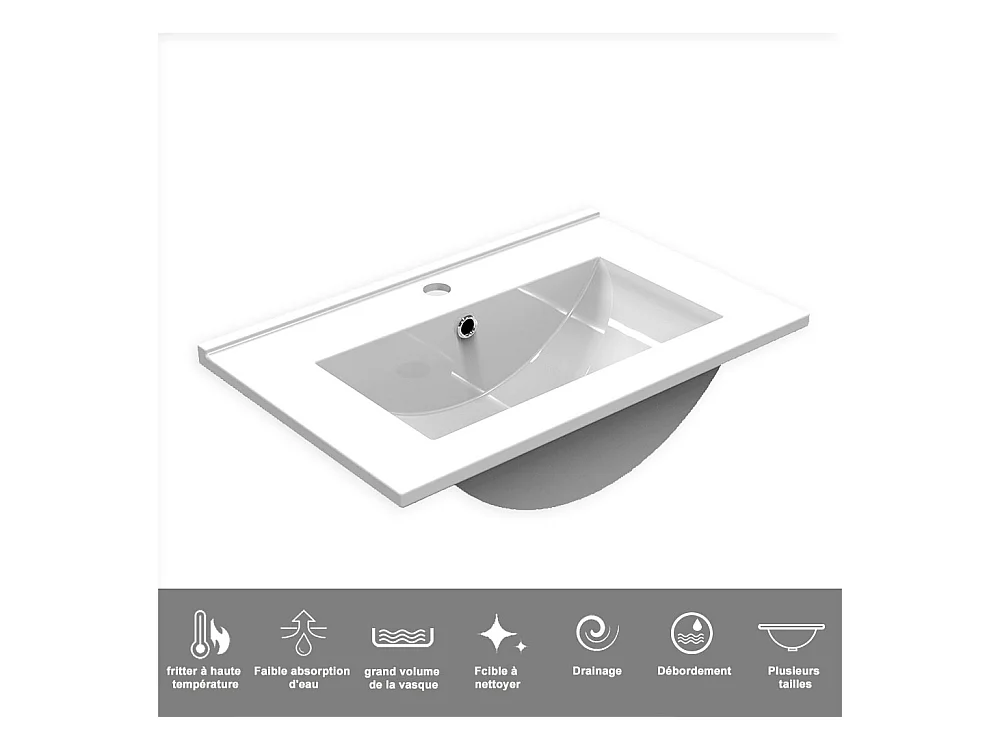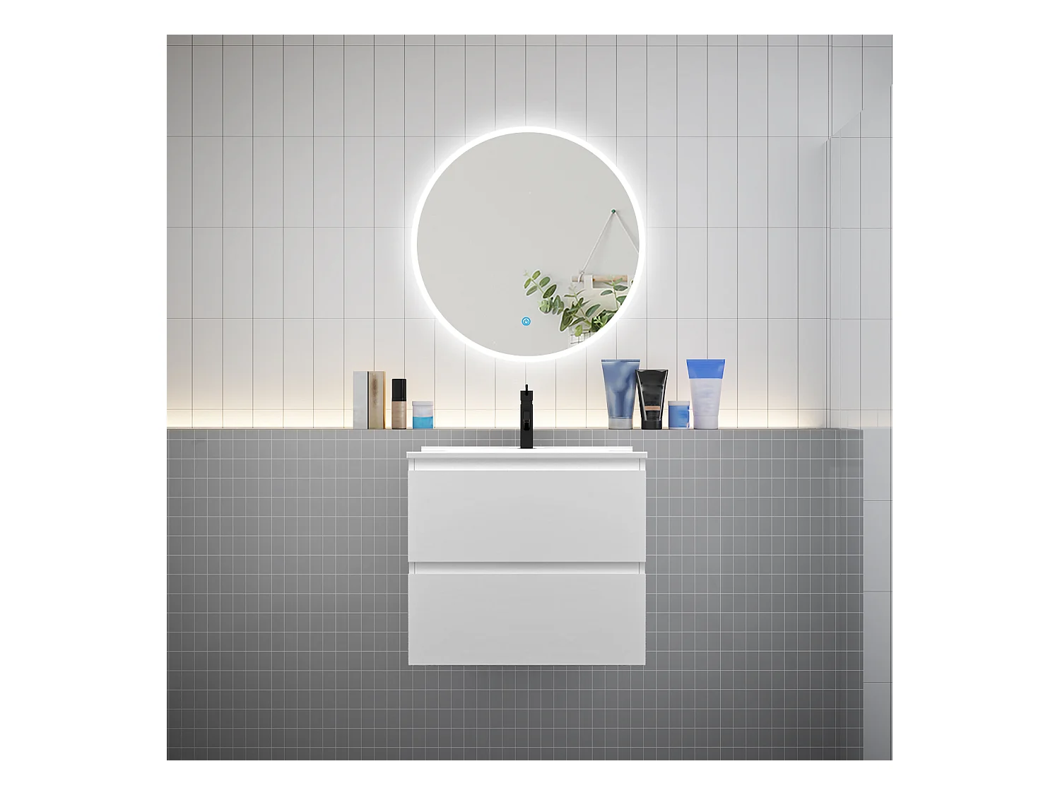 AICA Ensemble meuble de salle de bain Vasque L.60cm 2 tiroirs + lavabo + LED Miroir Rond 70cm,Blanc