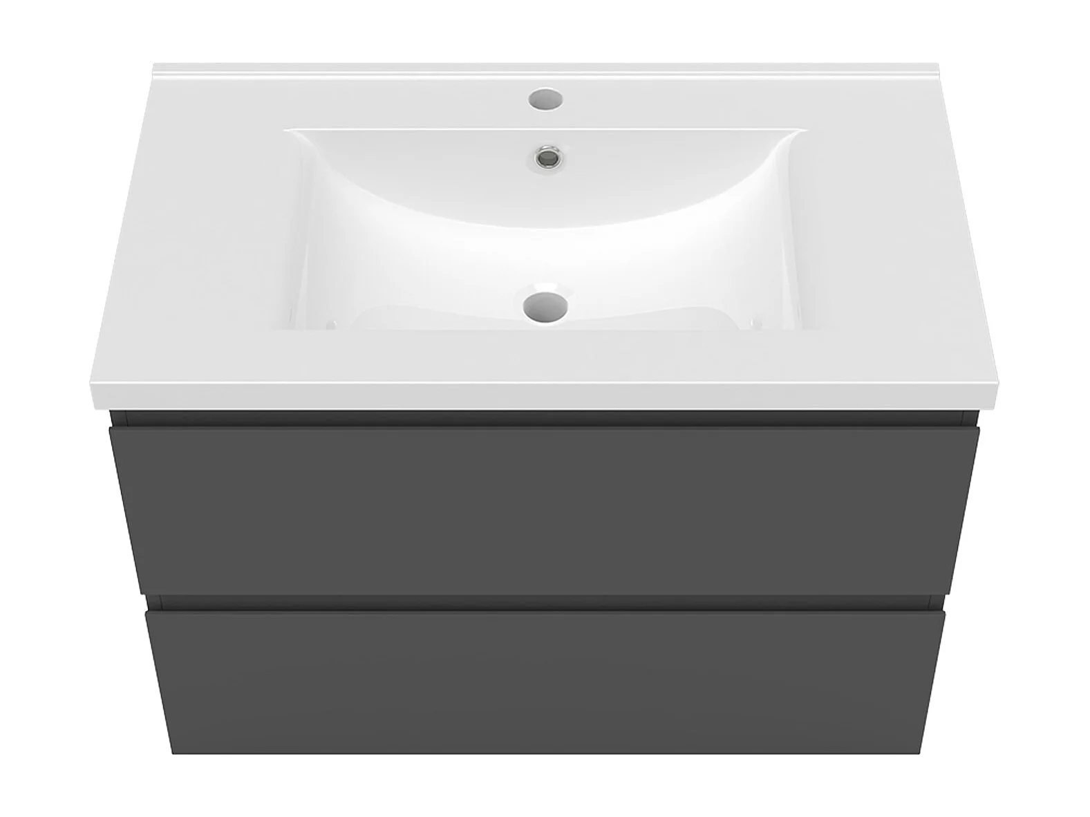Ensemble meuble vasque L.79cm 2 tiroirs + lavabo + LED miroir rond 90cm + 2*colonne,anthracite A