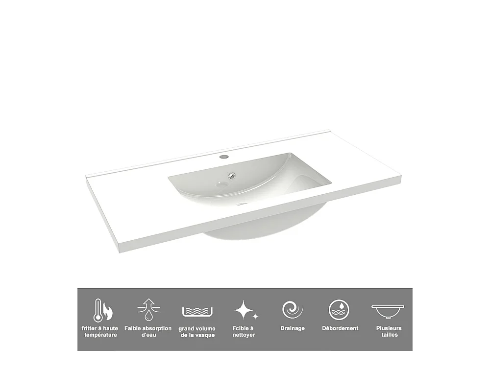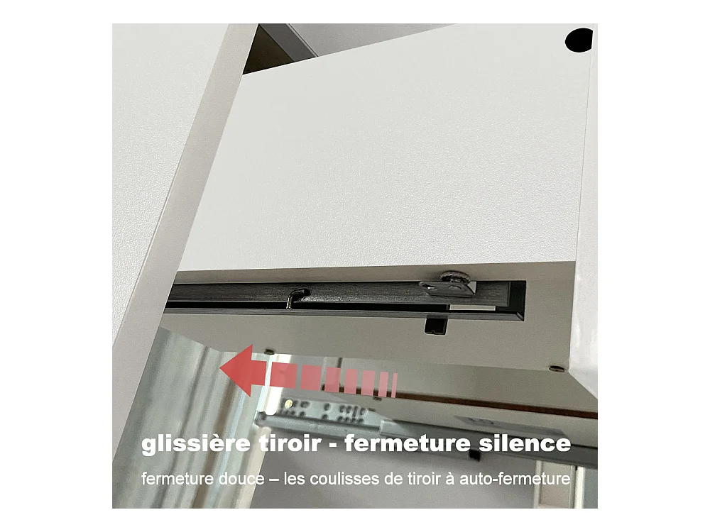 AICA Ensemble meuble de salle de bain Vasque L.99cm 2 tiroirs + lavabo + LED Miroir Rond 90cm + 2*Colonne,Blanc