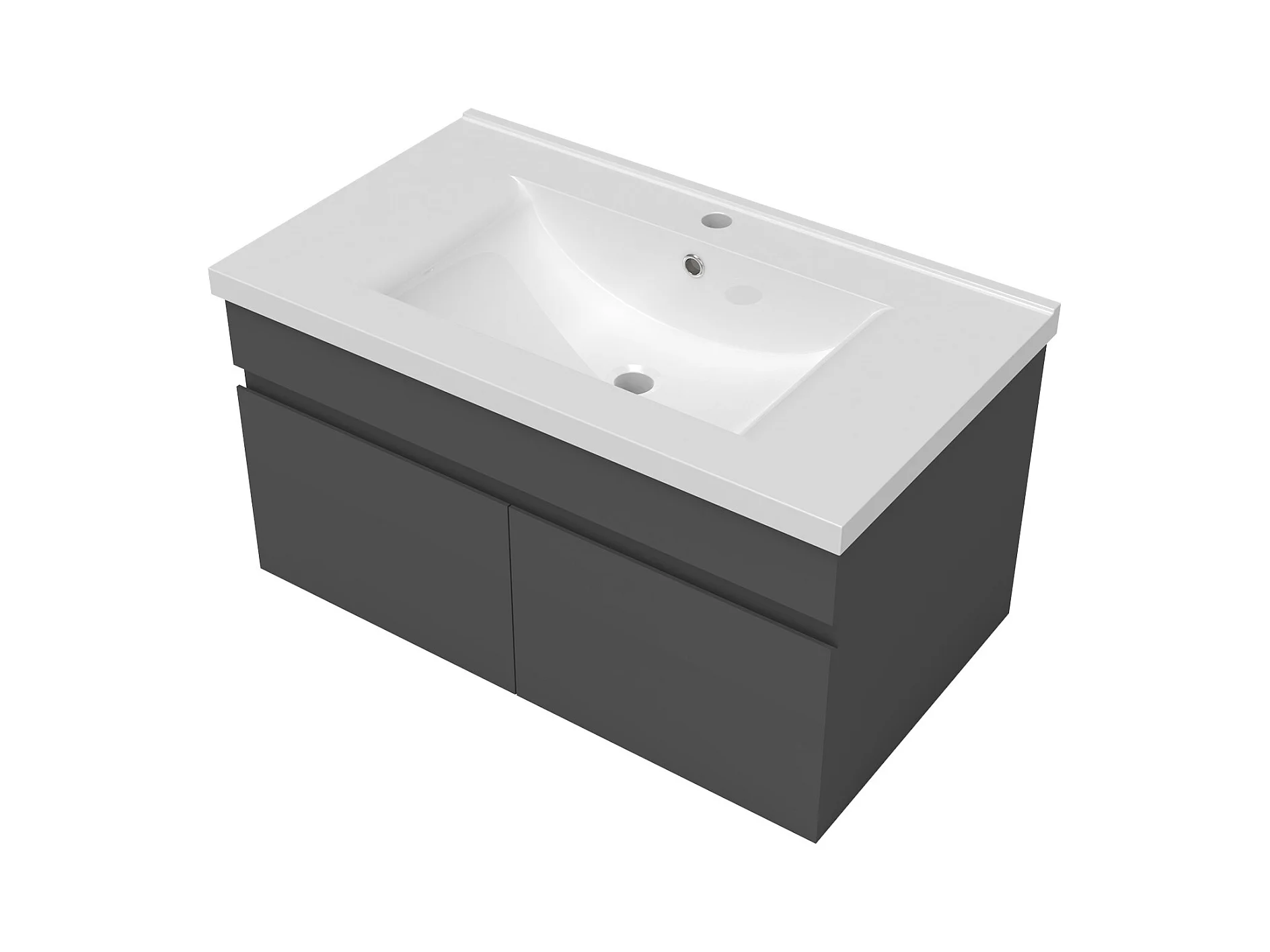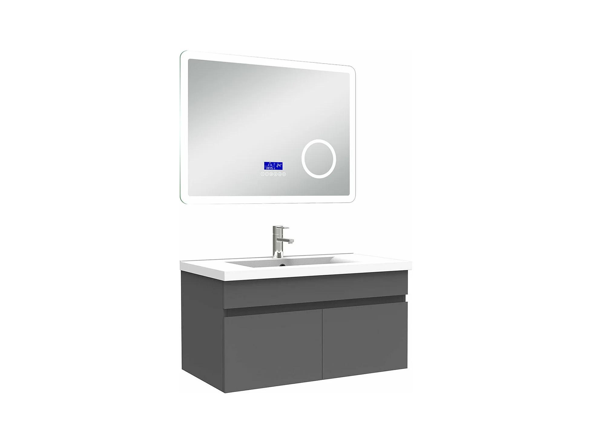 AICA Ensemble meuble Salle de Bain 80cm Anthracite avec simple vasque et Led miroir dimmable avec 3 couleurs+Bluetooth+3X grossissement