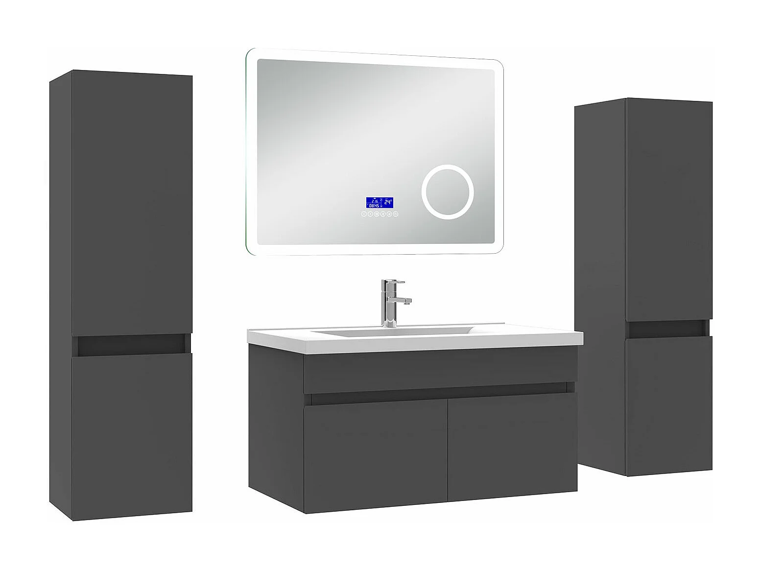 AICA Ensemble meuble Salle de Bain Anthracite 80cm avec 2 colonnes, simple vasque et Led miroir dimmable avec 3 couleurs, Bluetooth et 3X grossissement.