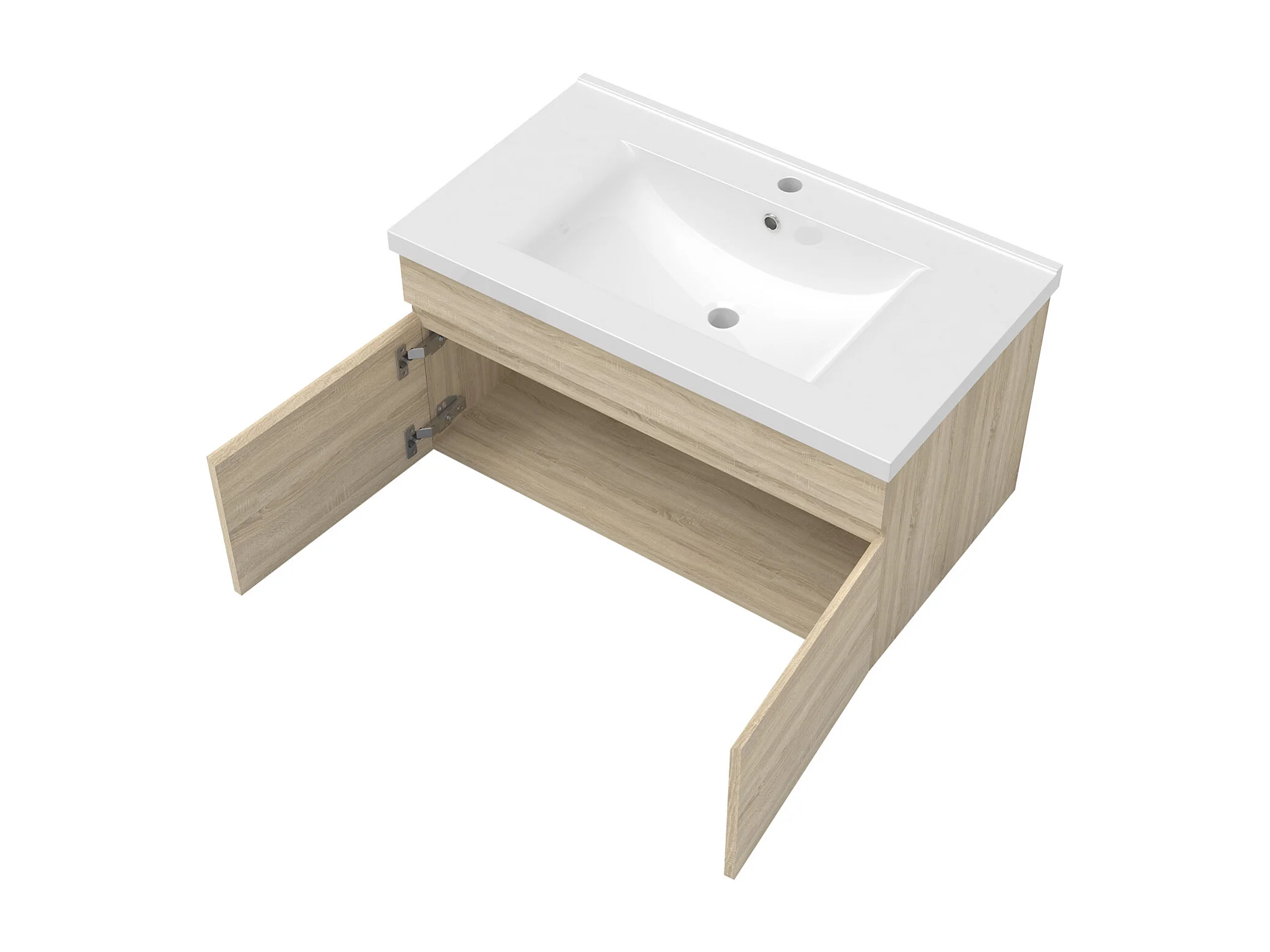 AICA Ensemble meuble Salle de Bain Chêne Wotan 80cm avec 2 colonnes, simple vasque et Led miroir dimmable avec 3 couleurs, Bluetooth et 3X grossissement.