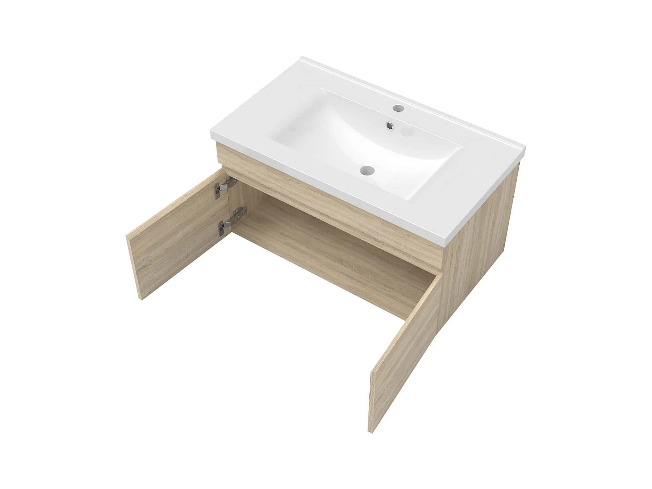 AICA Ensemble meuble Salle de Bain Chêne Wotan 80cm avec 2 colonnes, simple vasque et Led miroir dimmable avec 3 couleurs, Bluetooth et 3X grossissement.