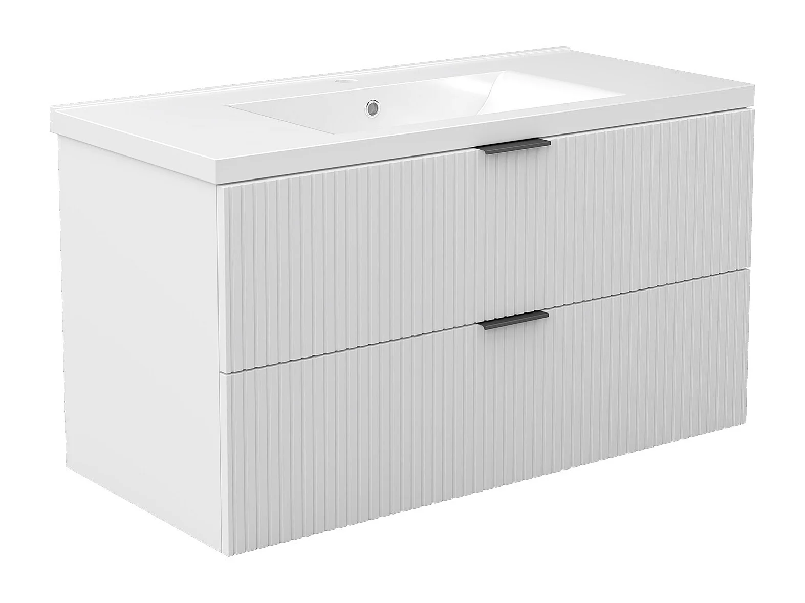 AICA Ensemble salle de bain suspendu 100 cm Blanc avec 2 tiroirs + vasque Céramique