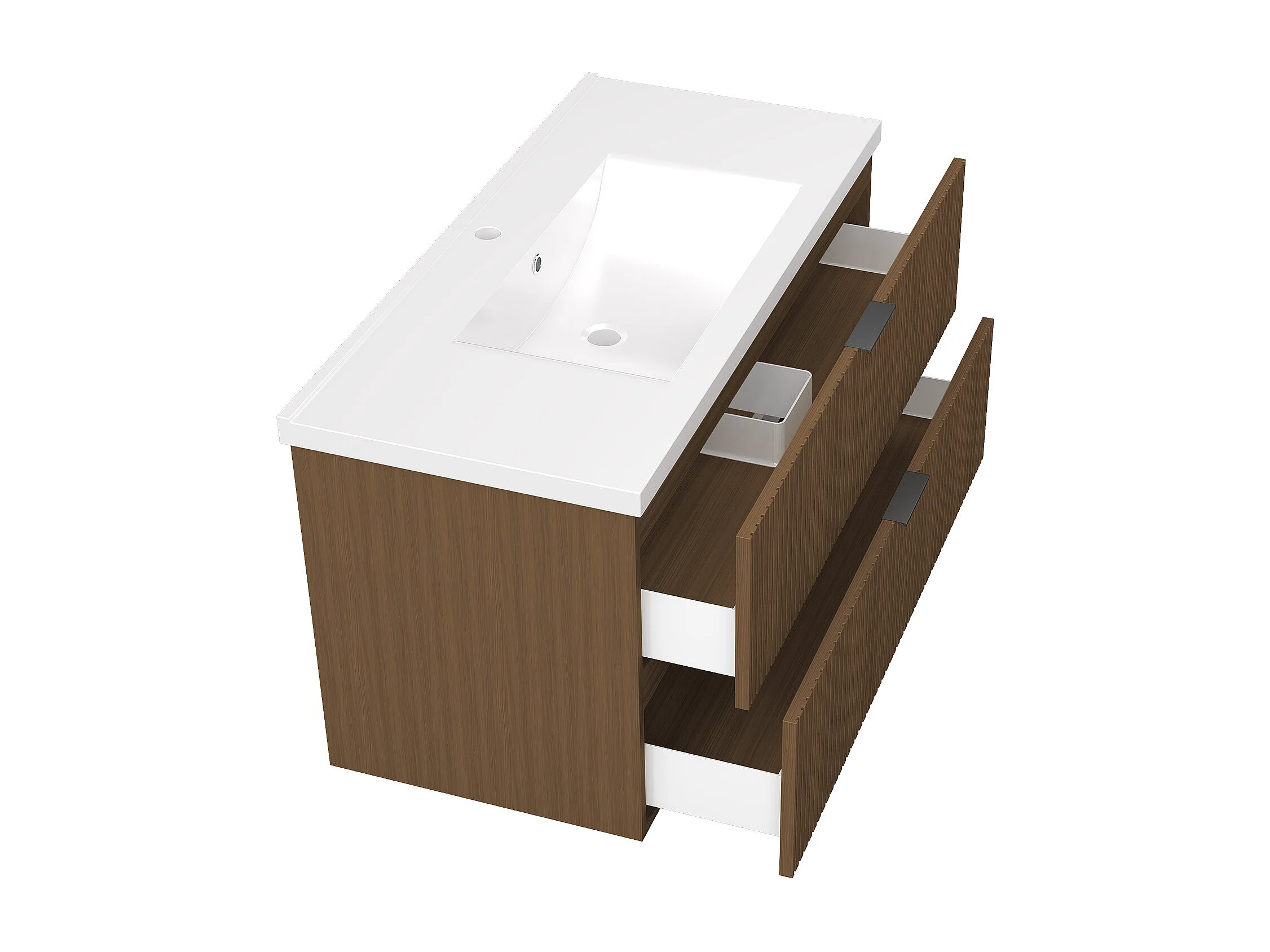 AICA Ensemble salle de bain suspendu 100 cm Noyer avec 2 tiroirs + vasque Céramique