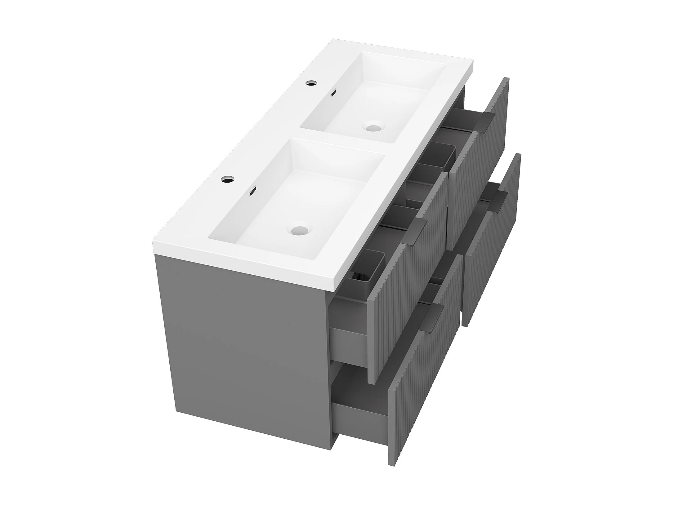 AICA Ensemble salle de bain suspendu 120 cm Anthracite - Avec 4 tiroirs + double vasque