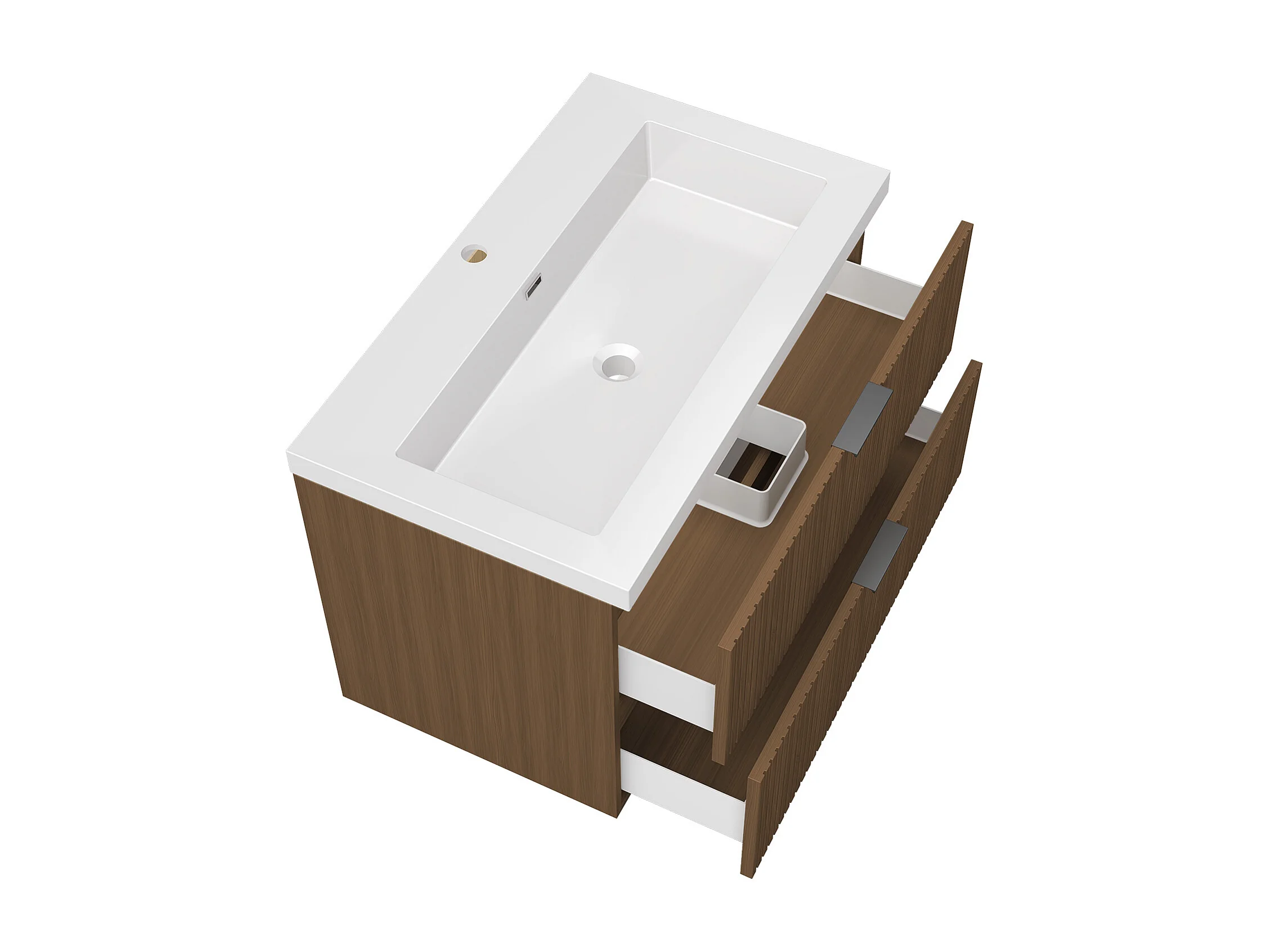 AICA Ensemble salle de bain suspendu 80 cm Noyer - Avec 2 tiroirs + vasque