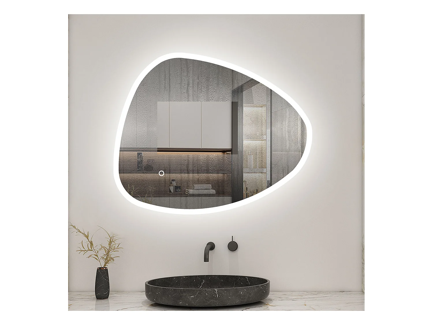 AICA LED Miroir lumineux 100 x 80cm avec anti-buée + 3 Couleurs + dimmable + mémoire, Miroir salle de bain