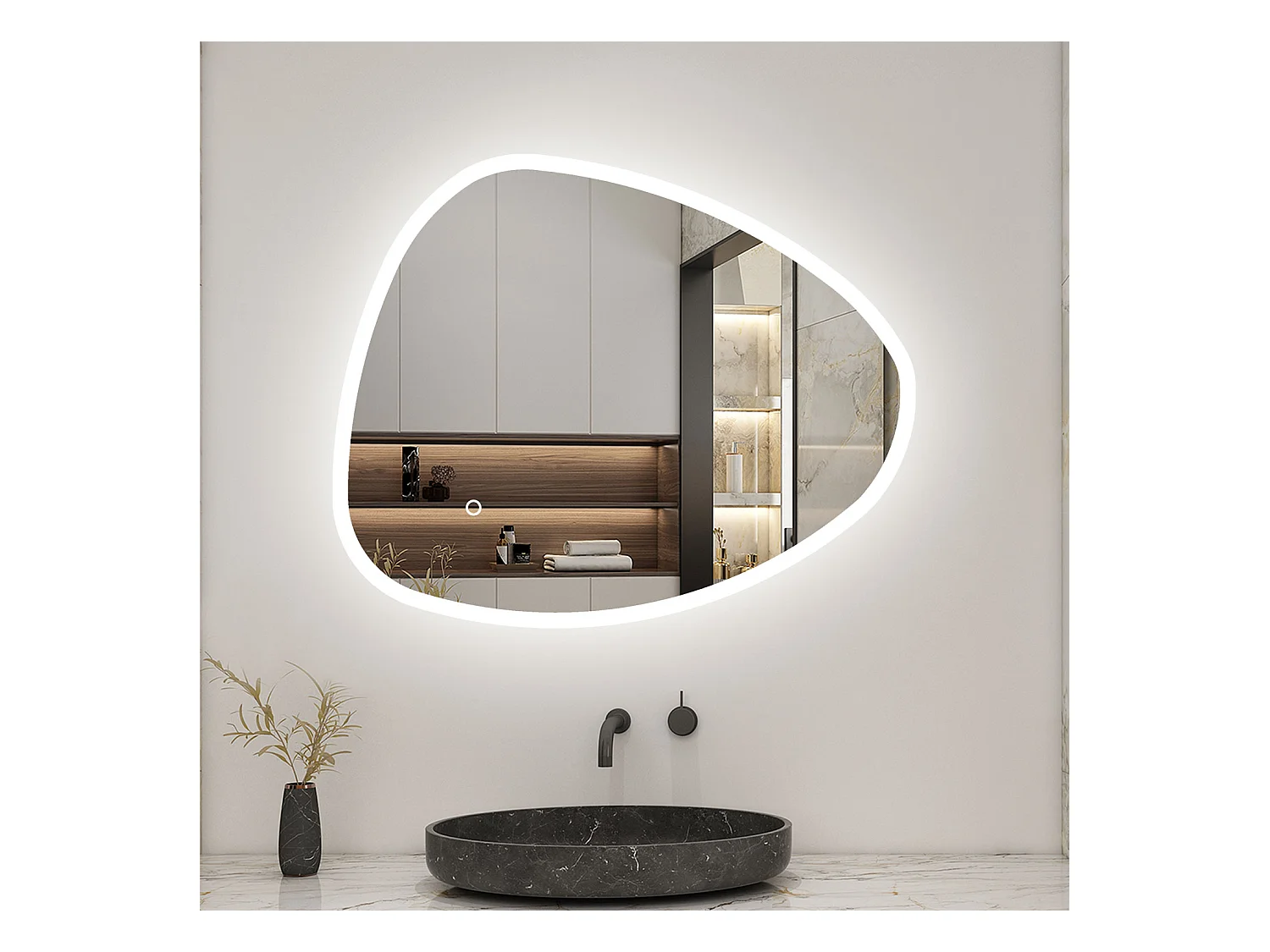 AICA Miroir salle de bain Asymétrique LED 80x65cm, Teardrop Mirror, Tricolore et Dimmable et Anti-buée